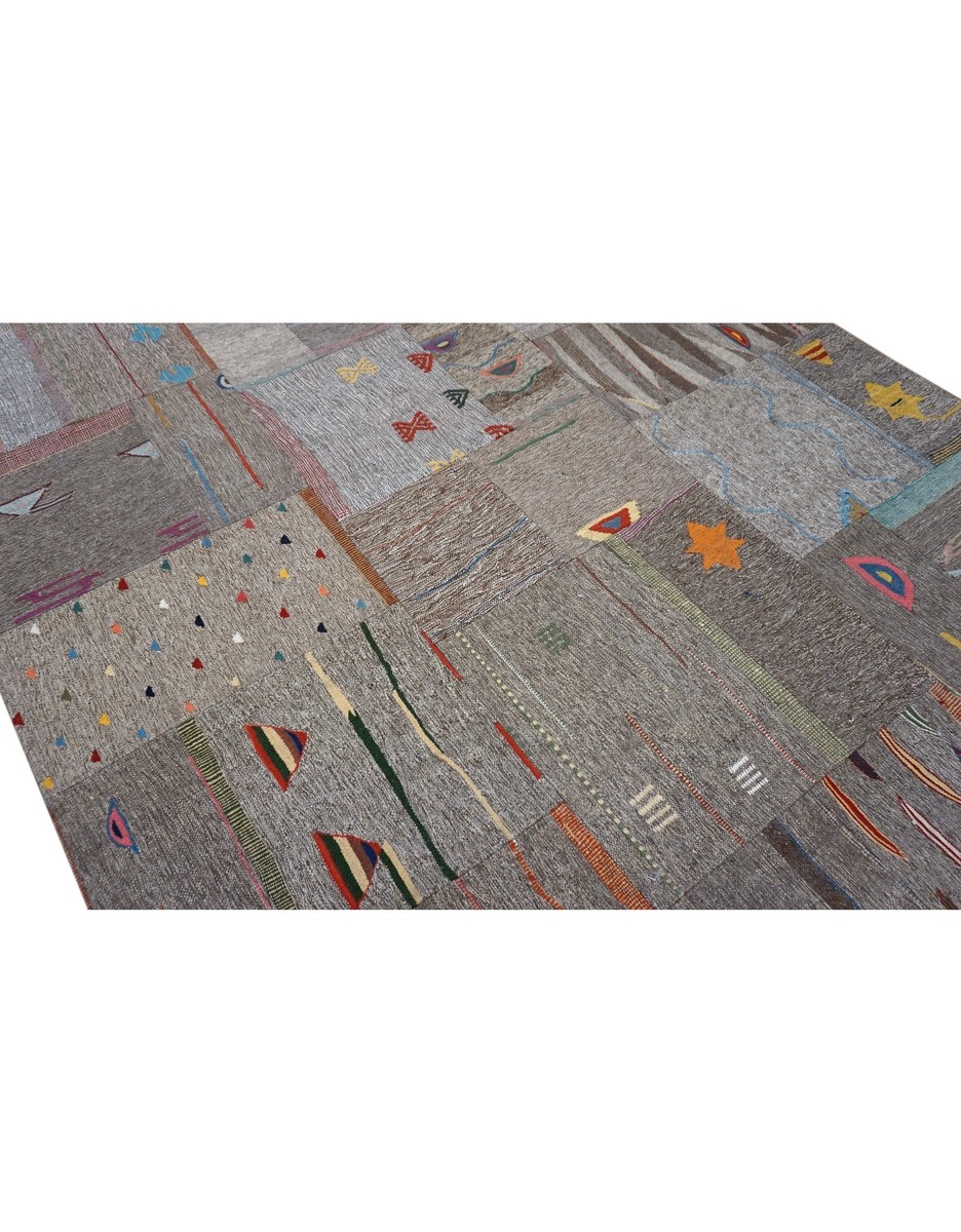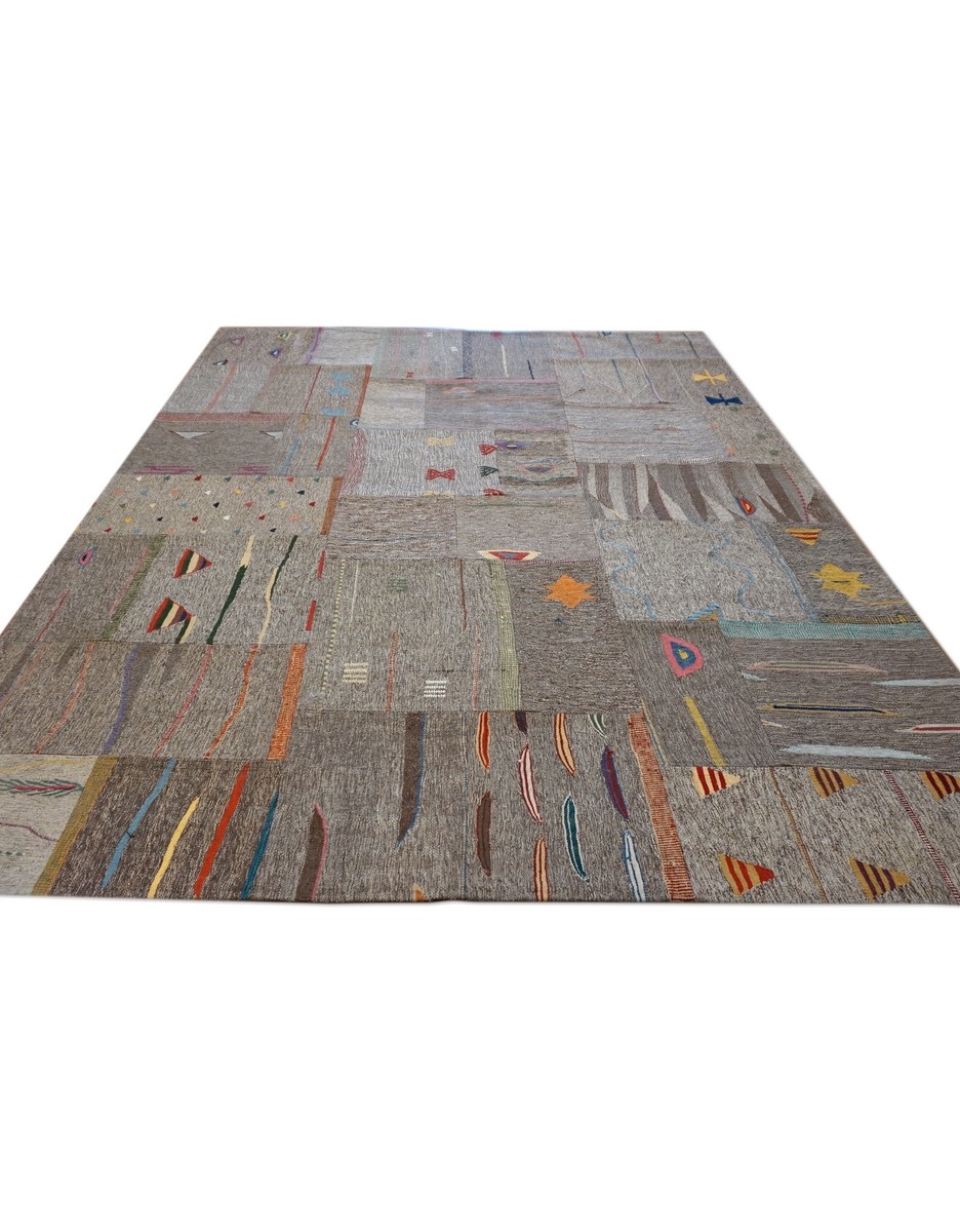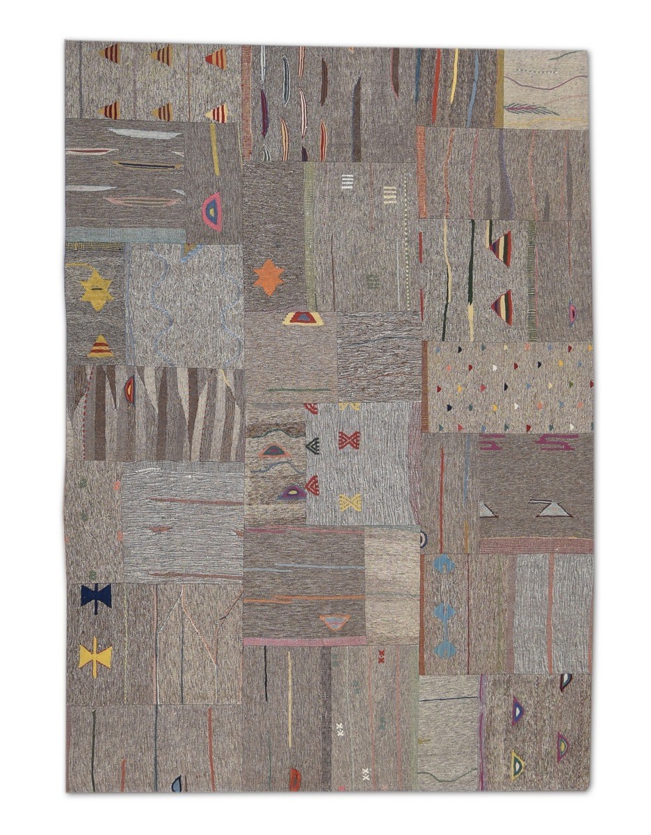 Patchwork Overdyed Rug uses vintage rug pieces, Hand Knotted