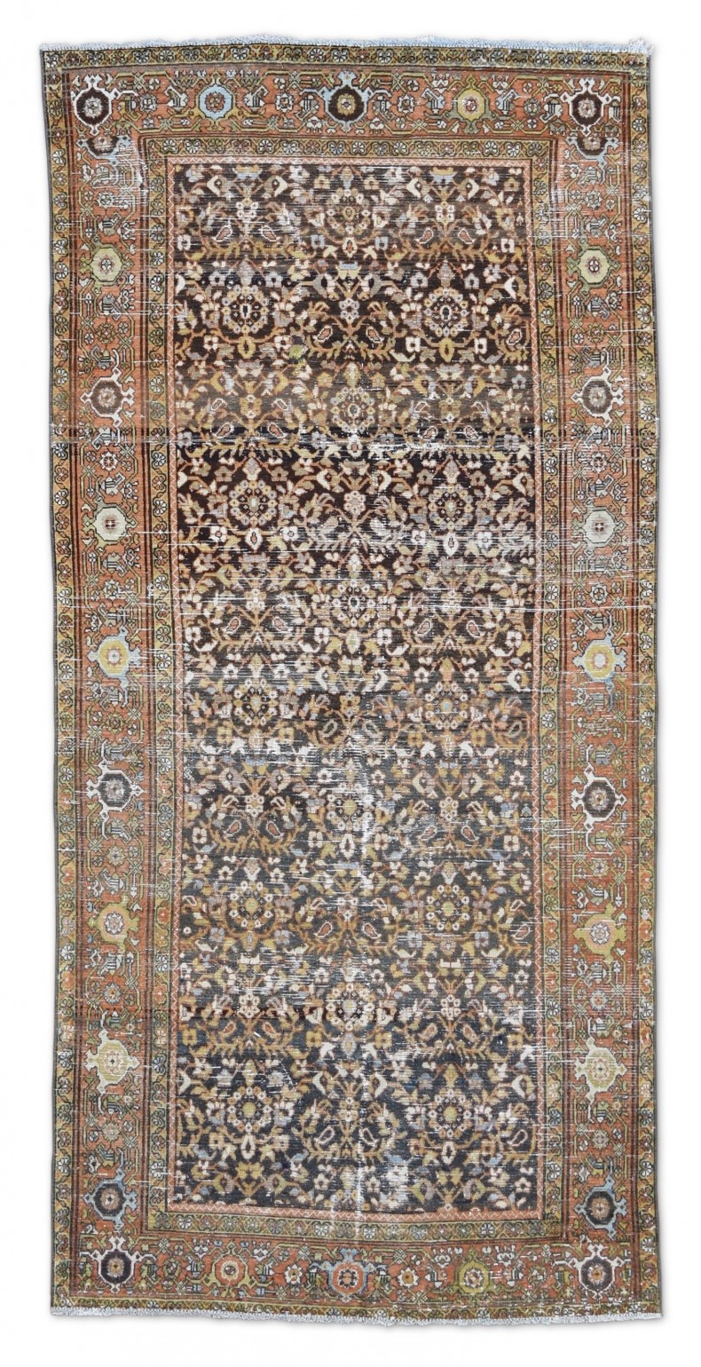 An exquisite antique Persian Malayer Rug. Weathered and distressed extremely decorative and highly sort after master piece