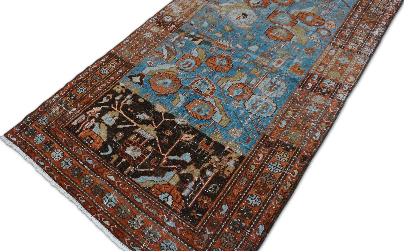 An exquisite antique Persian Malayer Rug. Weathered and distressed extremely decorative and highly sort after master piece