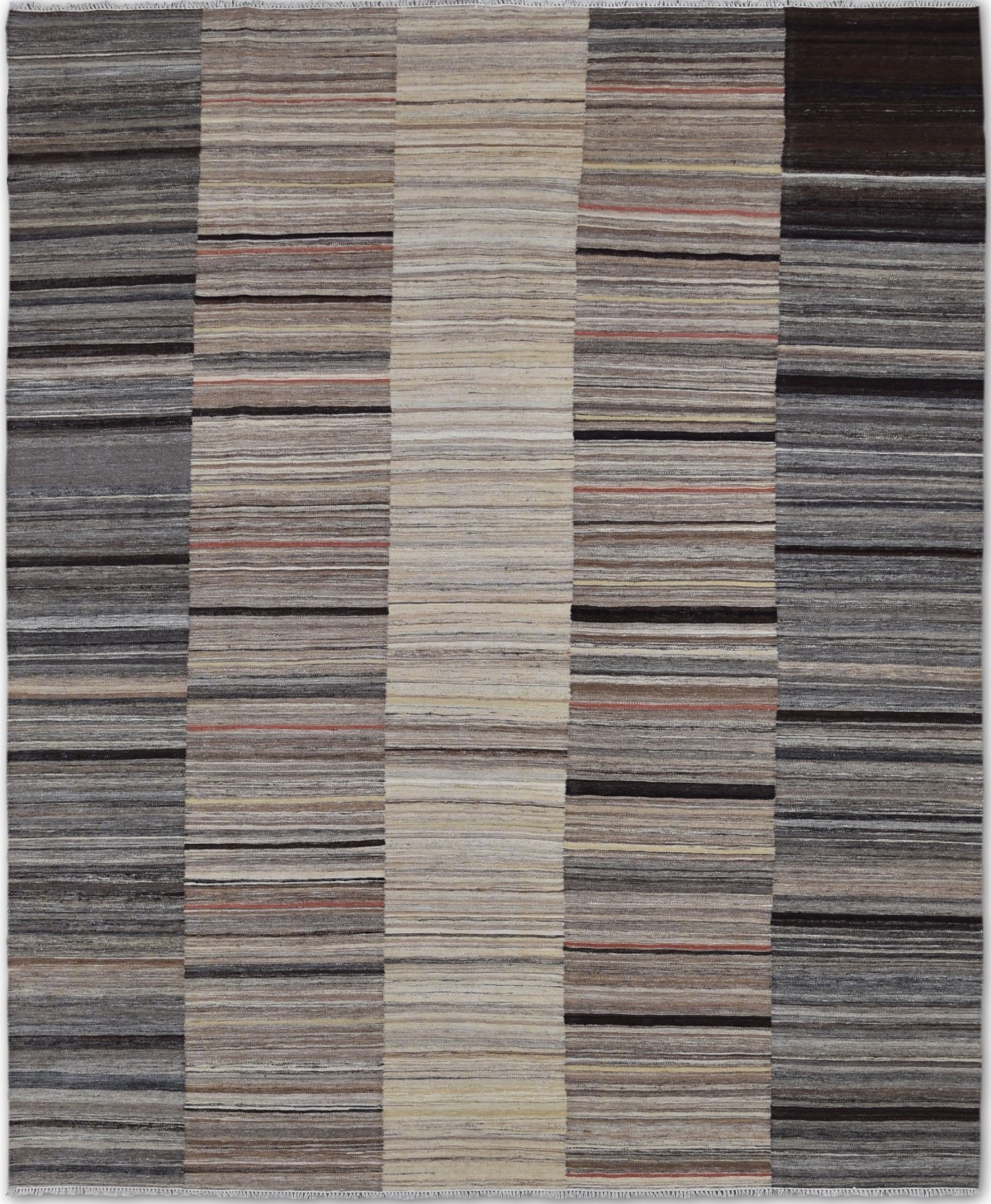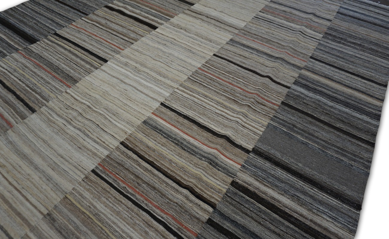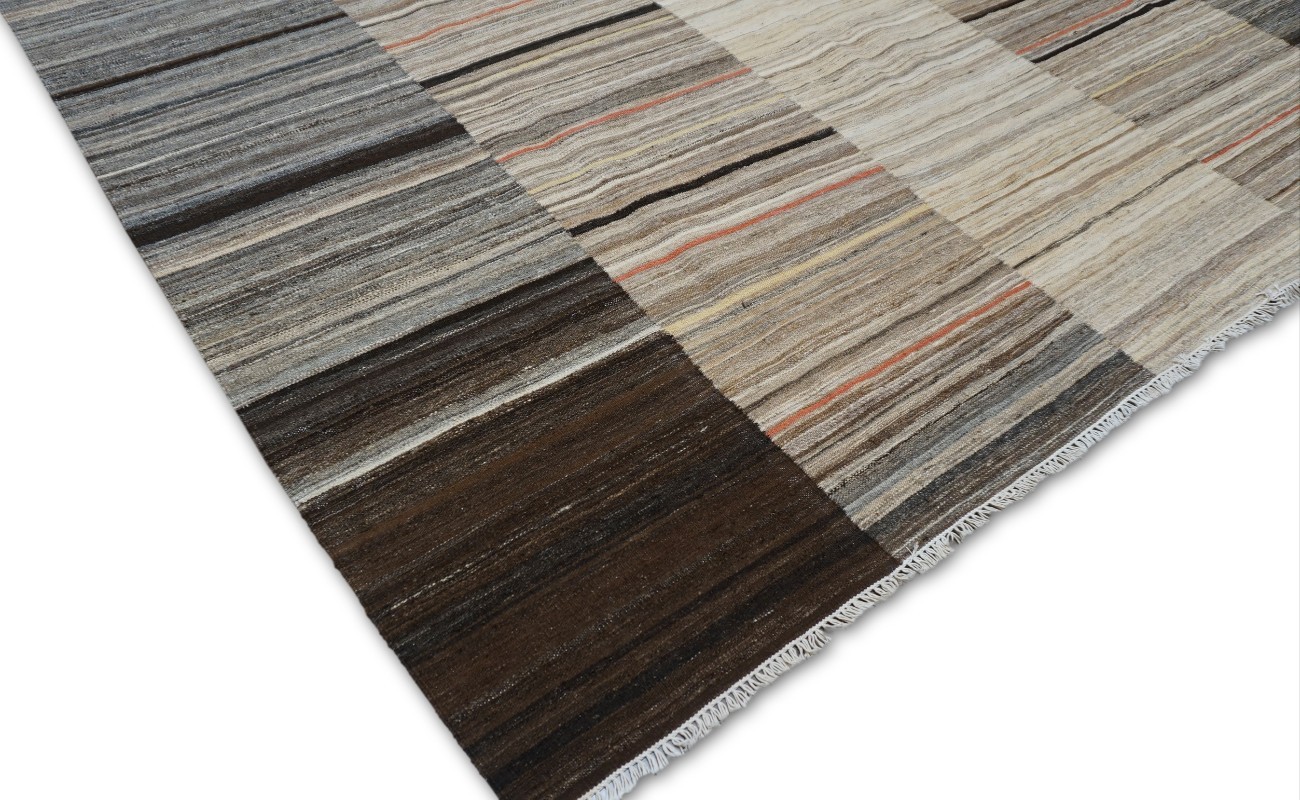 Kilims are flat woven rugs in a technique that comes from Anatolia, parts of Iran, the Caucasus, and Turkey. This Turkish style modern kilim rug is handwoven in Wool.