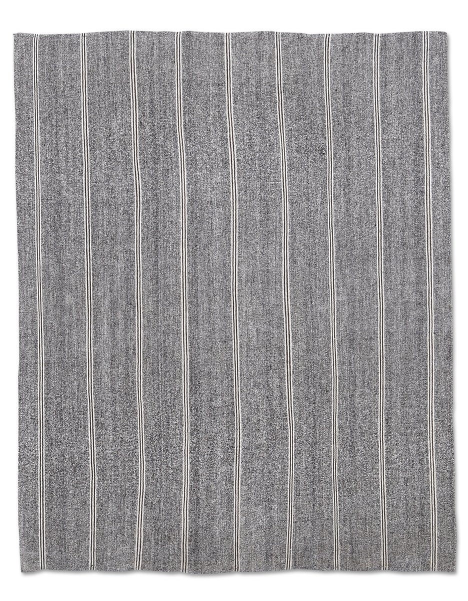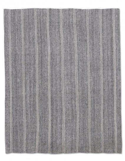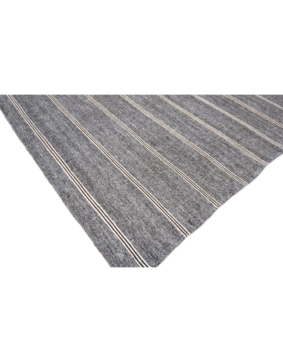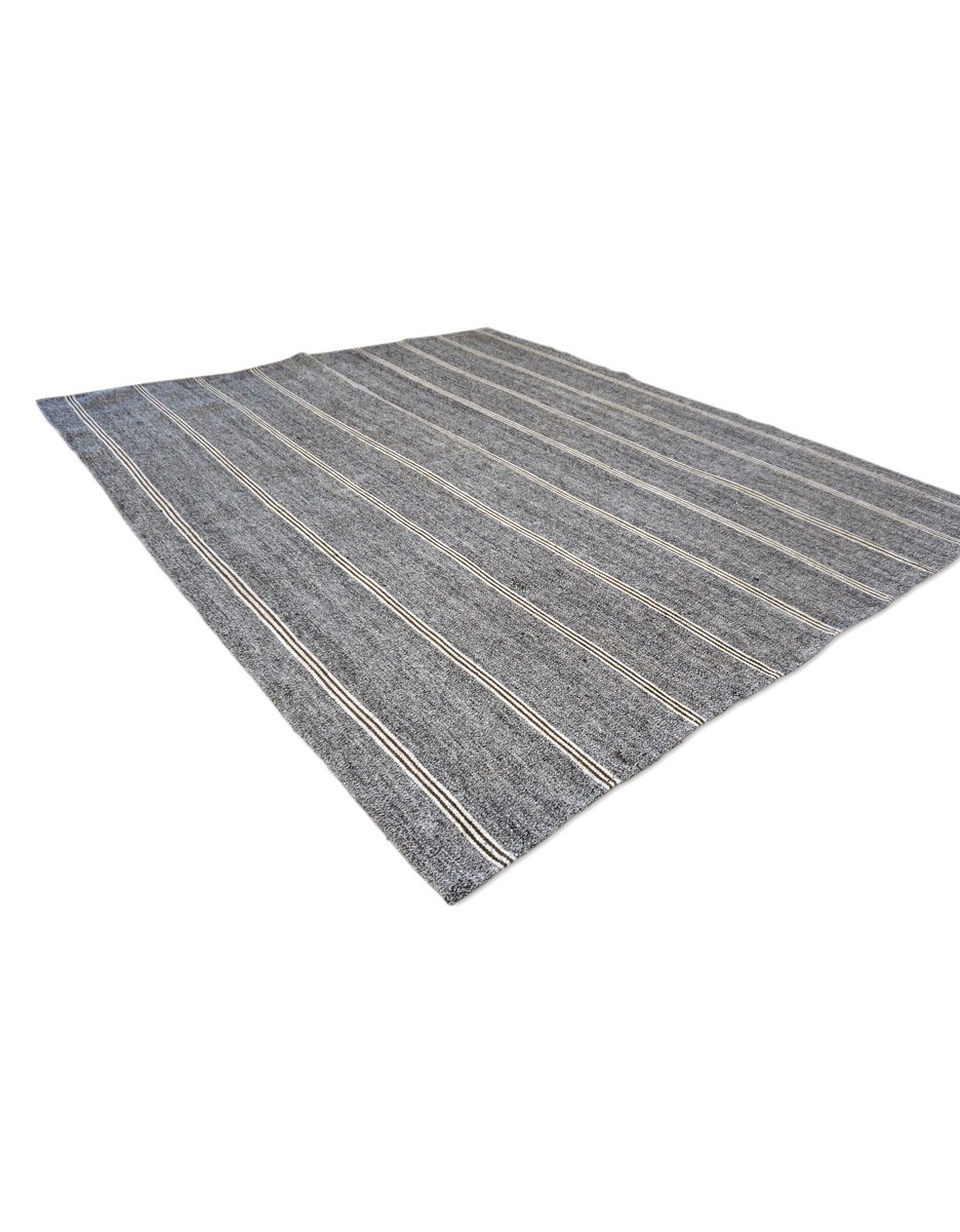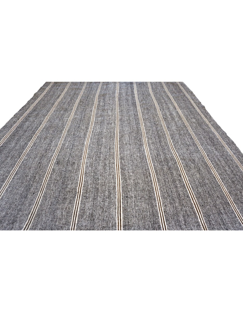 A beautiful vintage kilim is handwoven by Master Artisans using handspun goat hair in Turkey. Kilims are flat woven rugs in a technique that comes from Anatolia, parts of Iran, the Caucasus, and Turkestan. This Mazandaran style minimalist kilim offers simple designs in natural colors.