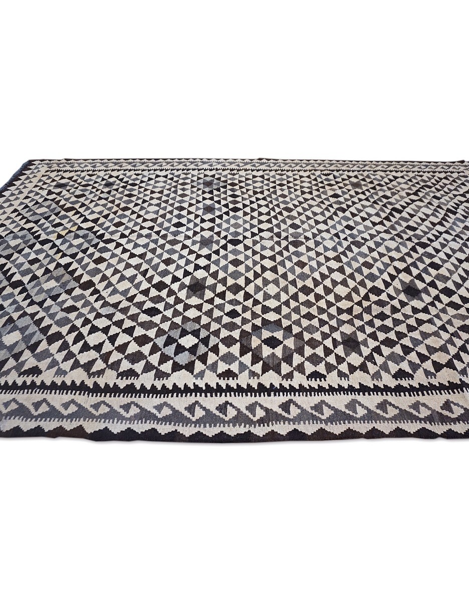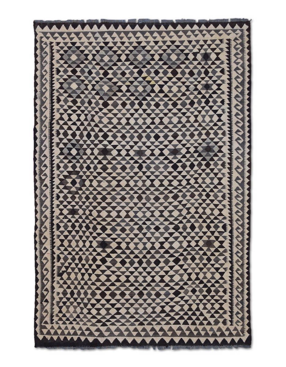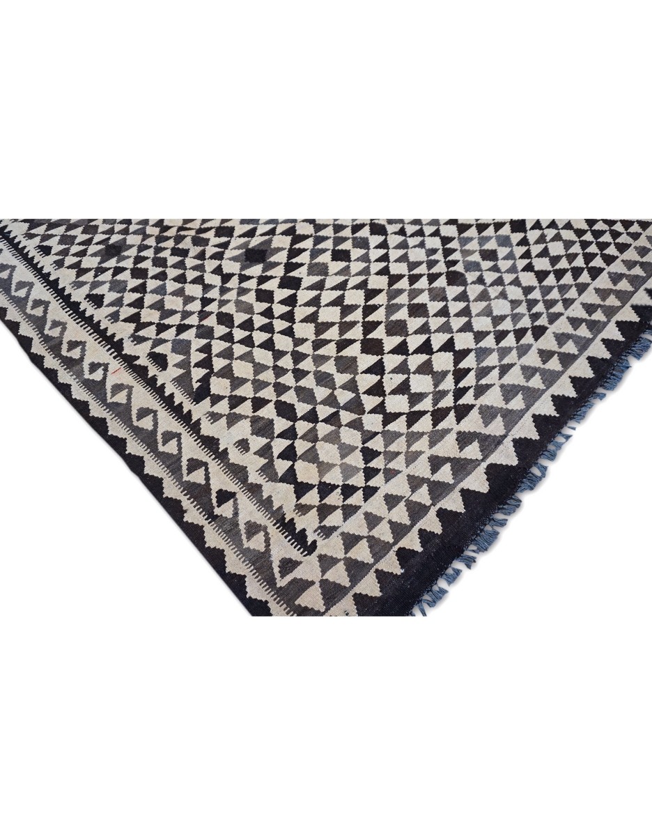 Kilims are flat woven rugs in a technique that comes from Anatolia, parts of Iran, the Caucasus, and Turkey. This Turkish style modern kilim rug is handwoven in Wool.