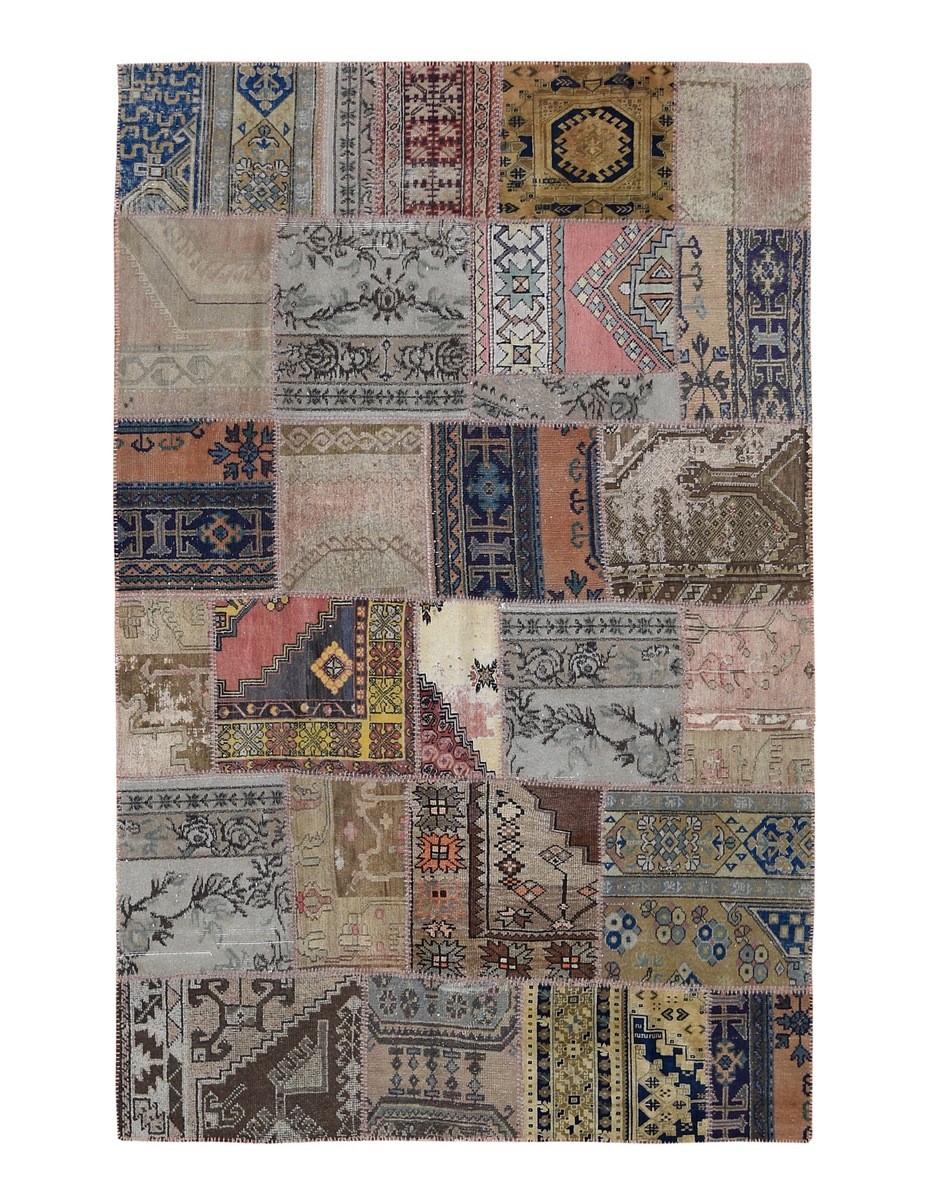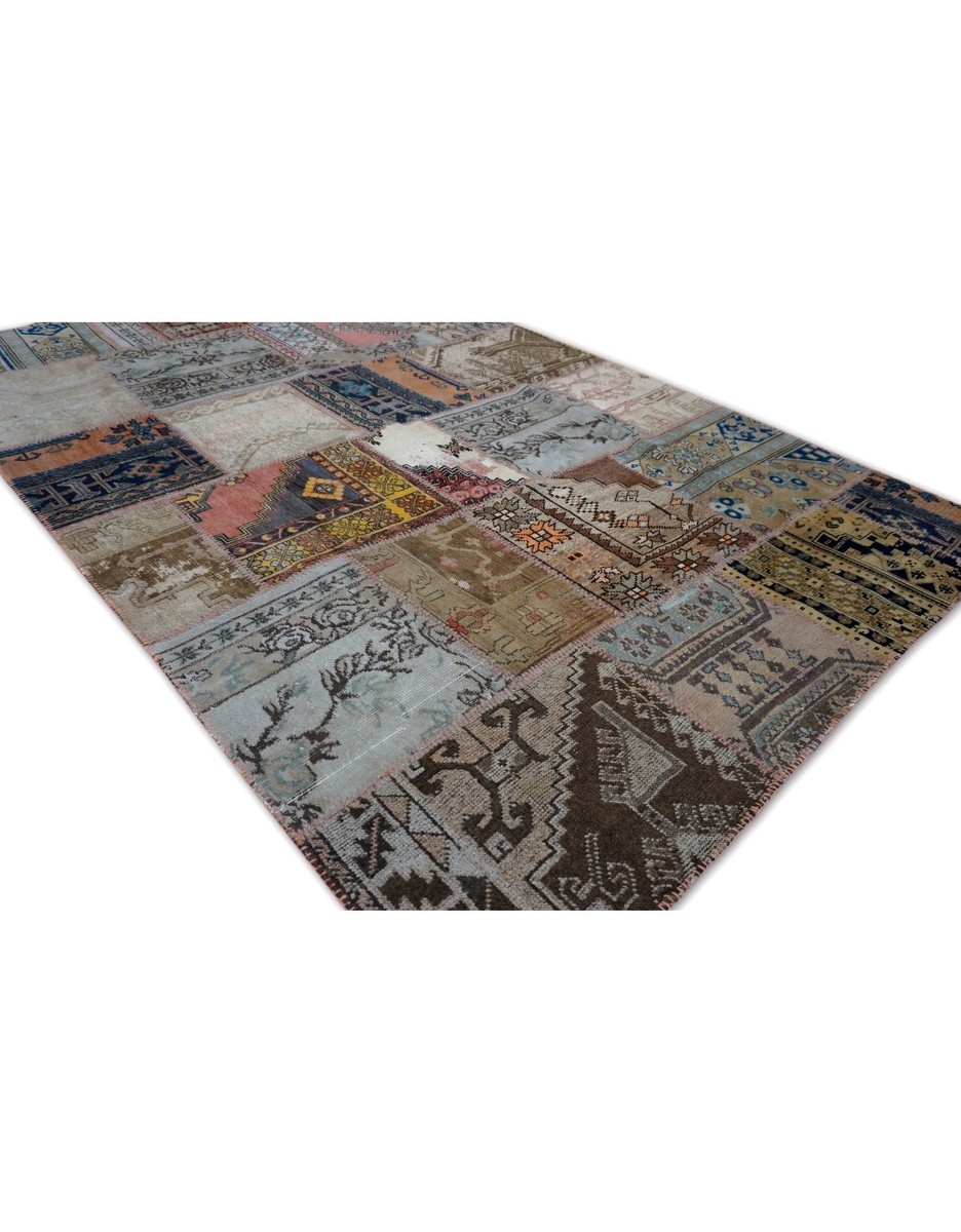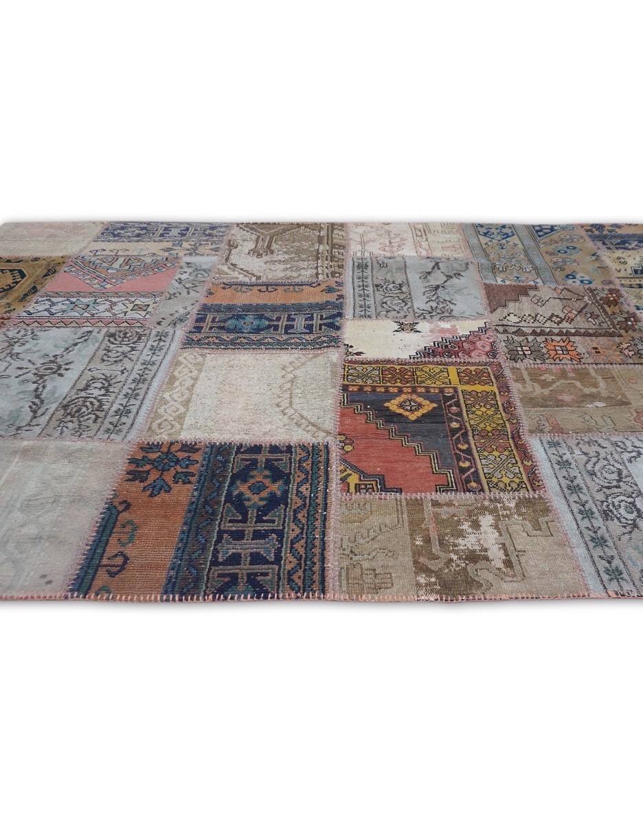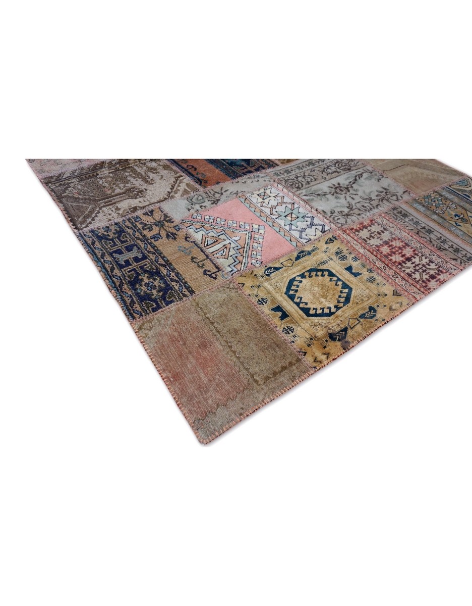 Patchwork Rug uses vintage rug pieces, Hand Knotted
