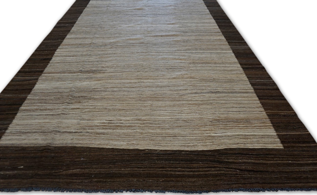 Kilims are flat woven rugs in a technique that comes from Anatolia, parts of Iran, the Caucasus, and Turkey. This Turkish style modern kilim rug is handwoven in Wool.