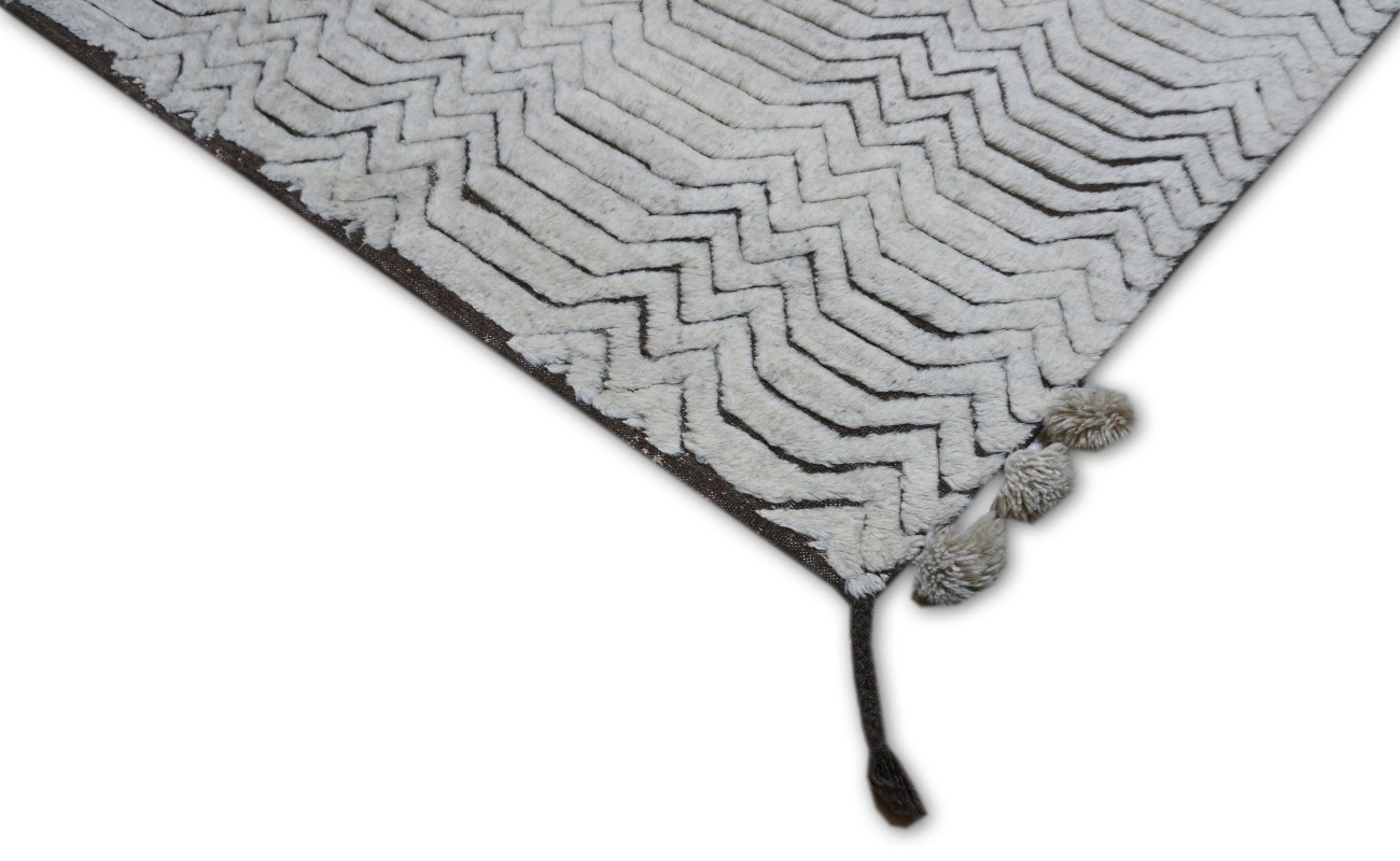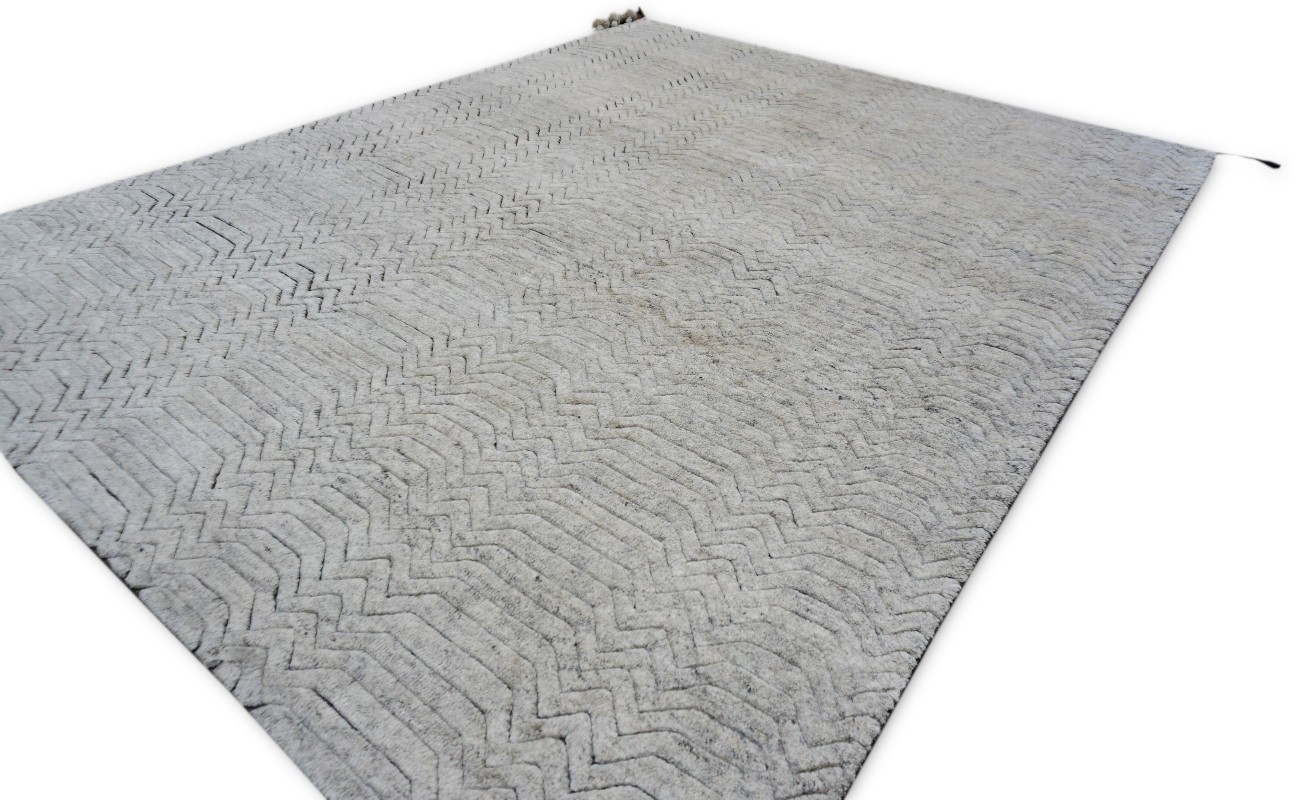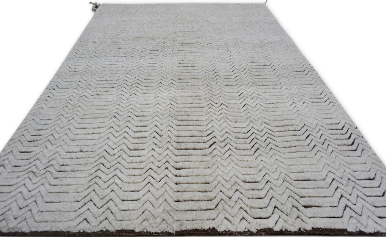 A beautiful Modern design Hand Knotted by using hand spun finest wool to give the pile softer touch done by Master Artisans. Moroccan Style Texture is also found this rug.