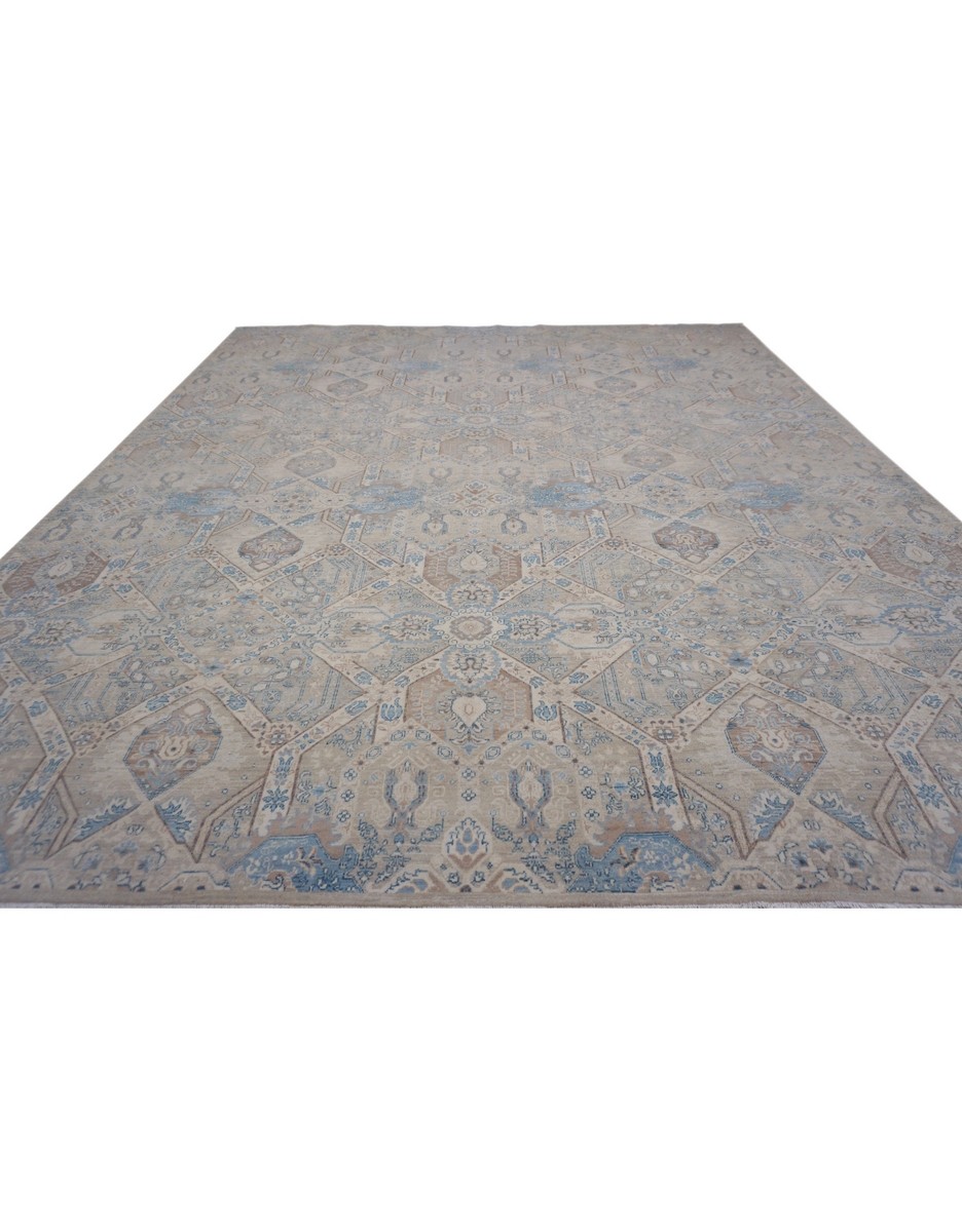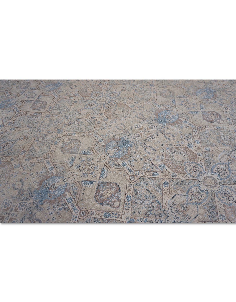 A beautiful Persian Sultanabad design using handspun high altitude wool dyed in subtle colors. Hand Knotted by master weavers of Afghanistan & painstakingly finishing process done by Pakistani Artisans makes this rug a masterpiece & takes us back to the late 19th-century era.