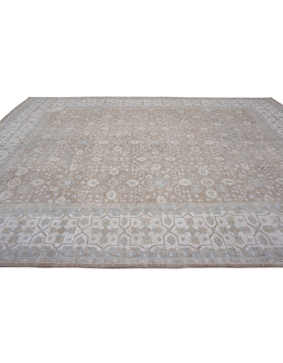 A beautiful Persian Sultanabad design using handspun high altitude wool dyed in subtle colors. Hand Knotted by master weavers of Afghanistan & painstakingly finishing process done by Pakistani Artisans makes this rug a masterpiece & takes us back to the late 19th-century era.