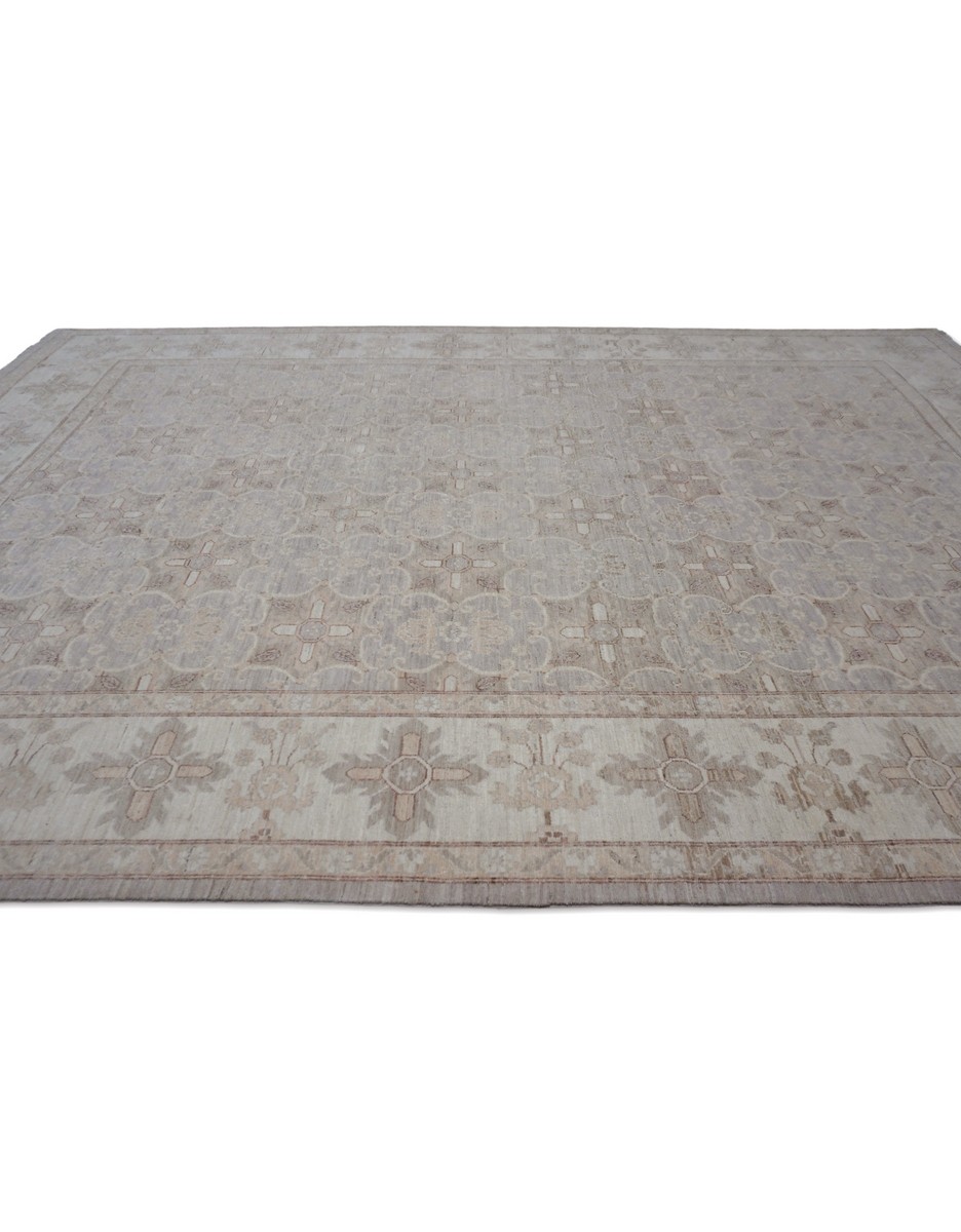 A beautiful Persian Sultanabad design using handspun high altitude wool dyed in subtle colors. Hand Knotted by master weavers of Afghanistan & painstakingly finishing process done by Pakistani Artisans makes this rug a masterpiece & takes us back to the late 19th-century era.