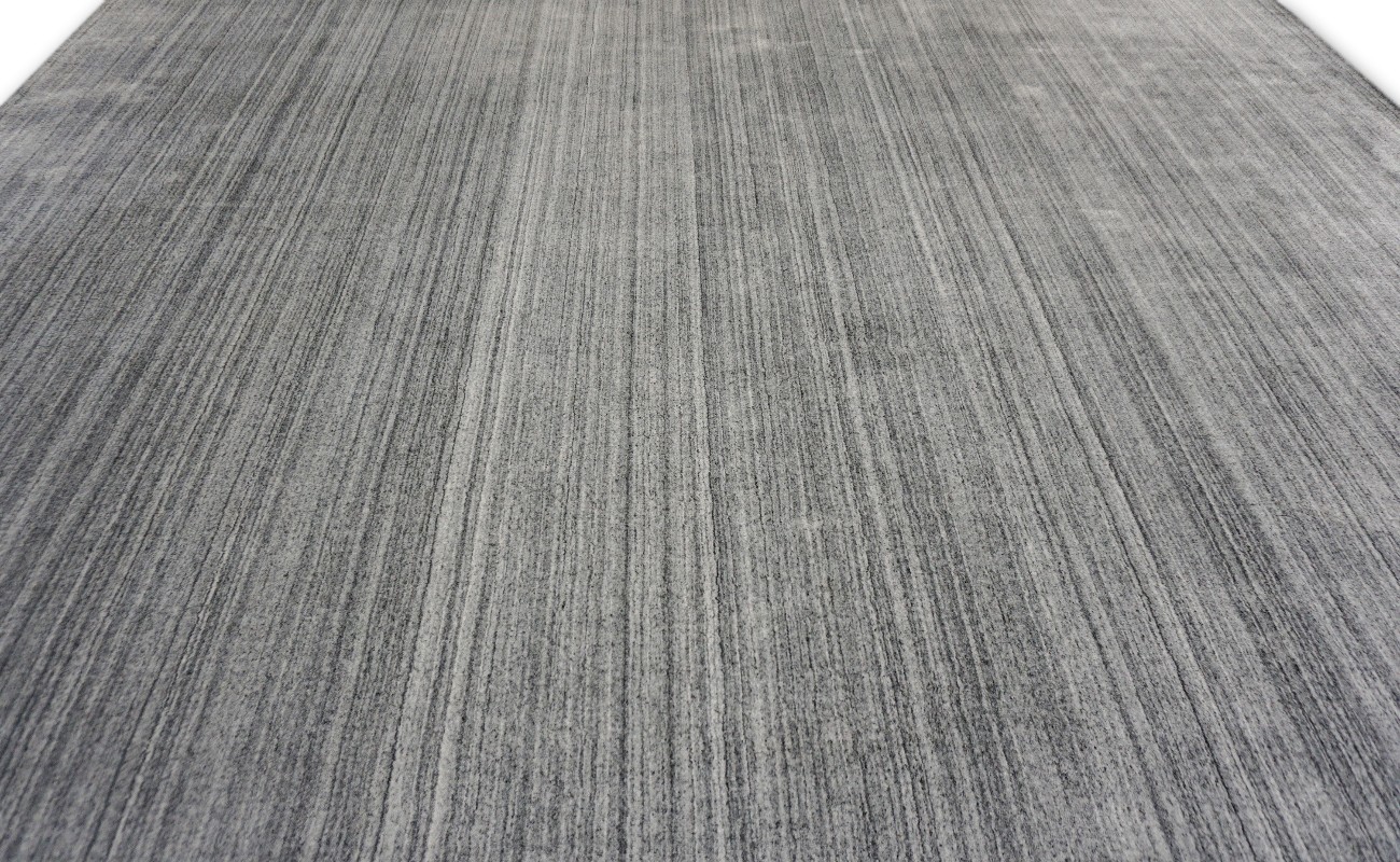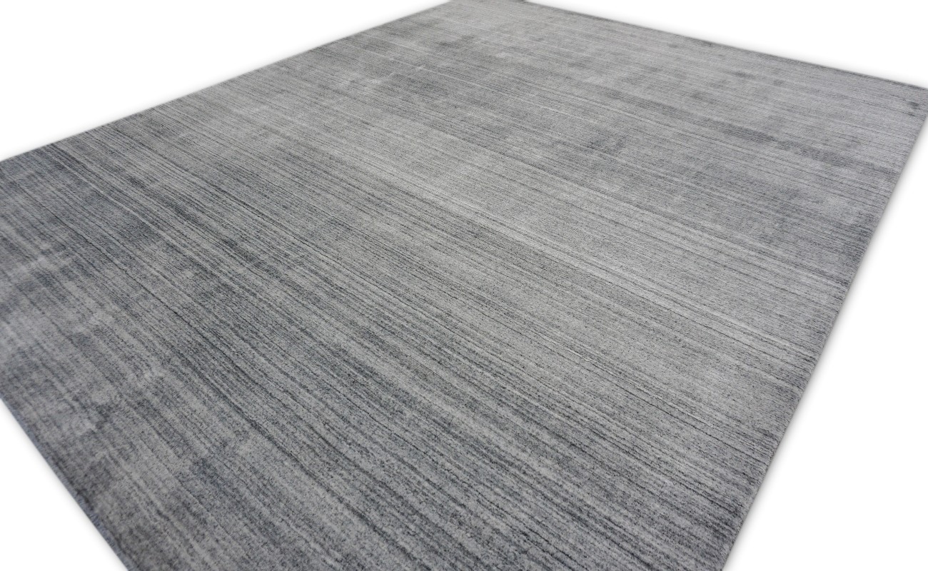 This Simple textured handmade rug is made of a wool and manmade silk blend and offers soft and durable pile.