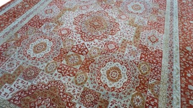 A beautiful Persian Sultanabad design using handspun high altitude wool dyed in subtle colors. Hand Knotted by master weavers of Afghanistan & painstakingly finishing process done by Pakistani Artisans makes this rug a masterpiece & takes us back to the late 19th-century era.