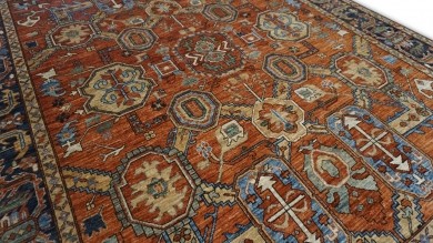 A beautiful Persian Sultanabad design using handspun high altitude wool dyed in subtle colors. Hand Knotted by master weavers of Afghanistan & painstakingly finishing process done by Pakistani Artisans makes this rug a masterpiece & takes us back to the late 19th-century era.