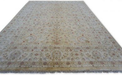 A beautiful Persian Sultanabad design using handspun high altitude wool dyed in subtle colors. Hand Knotted by master weavers of Afghanistan & painstakingly finishing process done by Pakistani Artisans makes this rug a masterpiece & takes us back to the late 19th-century era.
