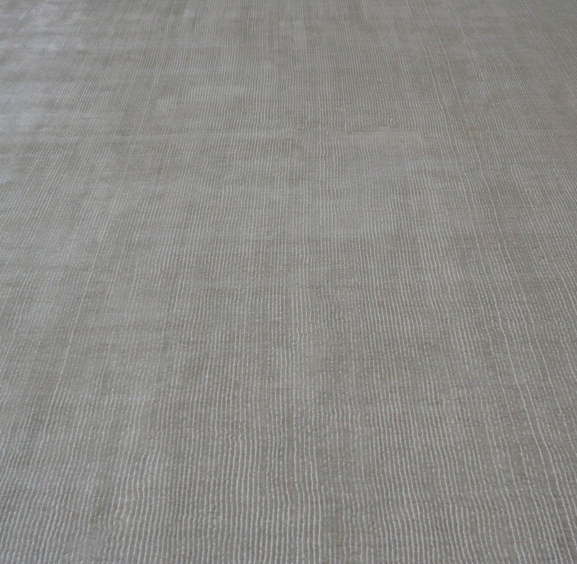 This Simple textured handmade rug is made of a wool and manmade silk blend and offers soft and durable pile.