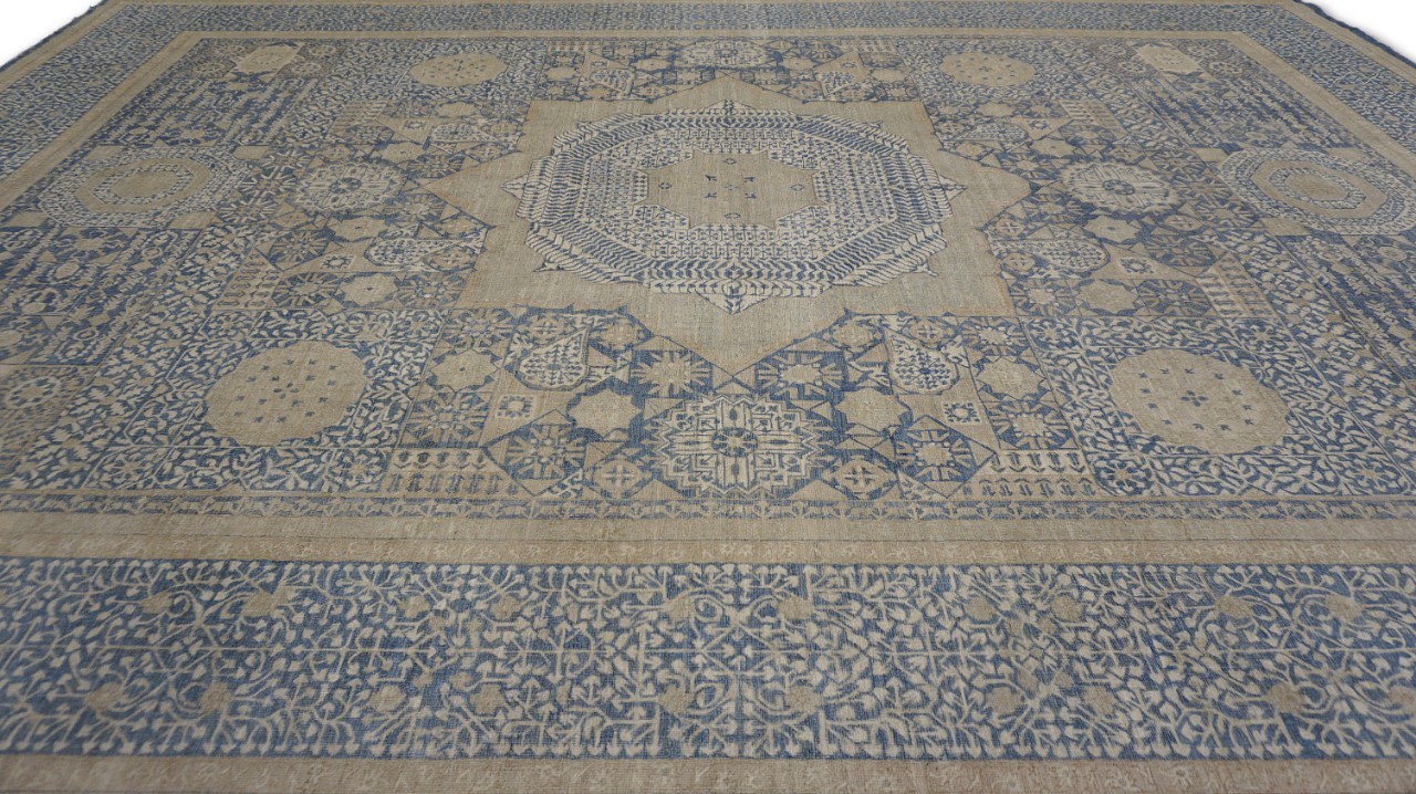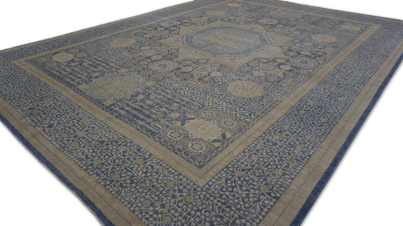 A beautiful Persian Sultanabad design using handspun high altitude wool dyed in subtle colors. Hand Knotted by master weavers of Afghanistan & painstakingly finishing process done by Pakistani Artisans makes this rug a masterpiece & takes us back to the late 19th-century era.