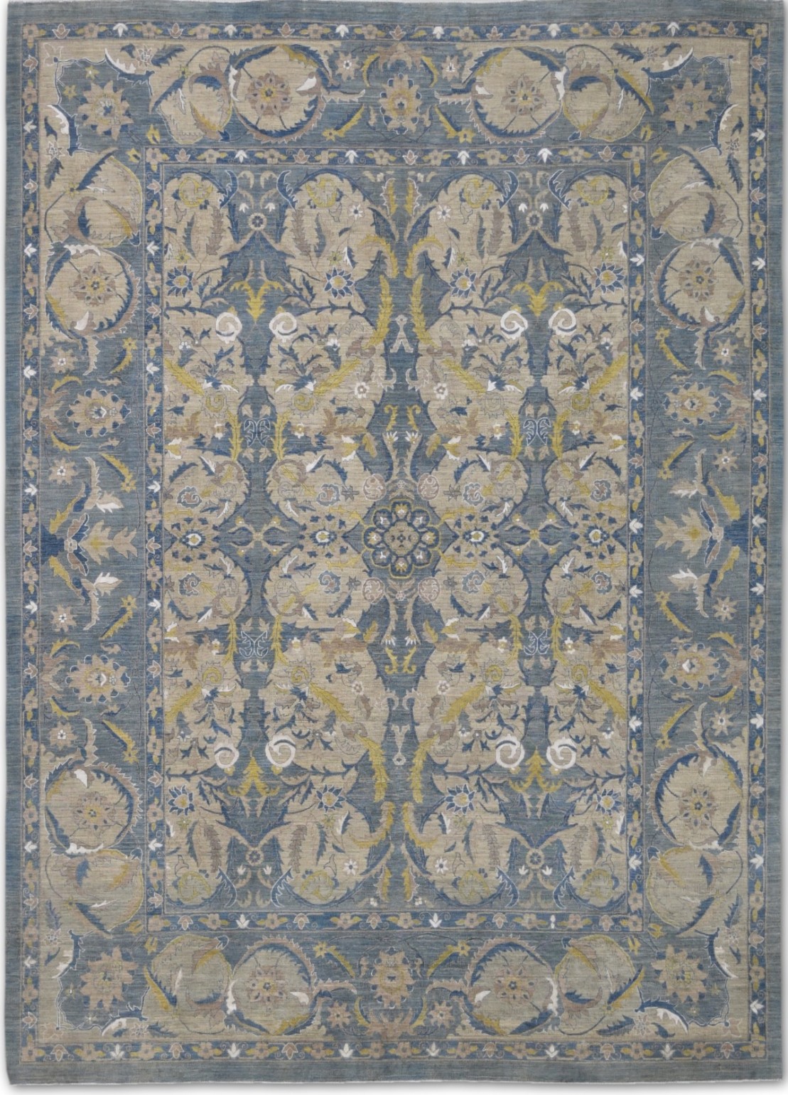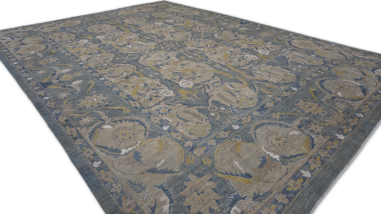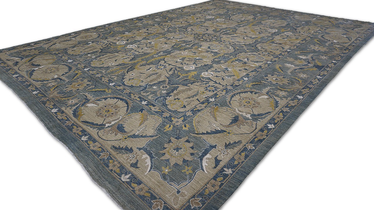 A beautiful Persian Sultanabad design using handspun high altitude wool dyed in subtle colors. Hand Knotted by master weavers of Afghanistan & painstakingly finishing process done by Pakistani Artisans makes this rug a masterpiece & takes us back to the late 19th-century era.