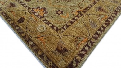 A beautiful Persian Sultanabad design using handspun high altitude wool dyed in subtle colors. Hand Knotted by master weavers of Afghanistan & painstakingly finishing process done by Pakistani Artisans makes this rug a masterpiece & takes us back to the late 19th-century era.