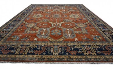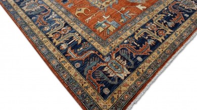 A beautiful Persian Sultanabad design using handspun high altitude wool dyed in subtle colors. Hand Knotted by master weavers of Afghanistan & painstakingly finishing process done by Pakistani Artisans makes this rug a masterpiece & takes us back to the late 19th-century era.