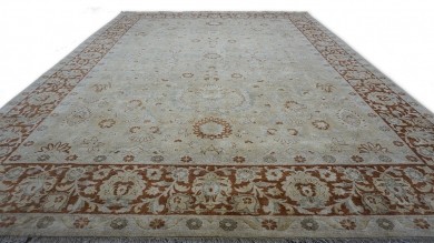 A beautiful Persian Sultanabad design using handspun high altitude wool dyed in subtle colors. Hand Knotted by master weavers of Afghanistan & painstakingly finishing process done by Pakistani Artisans makes this rug a masterpiece & takes us back to the late 19th-century era.