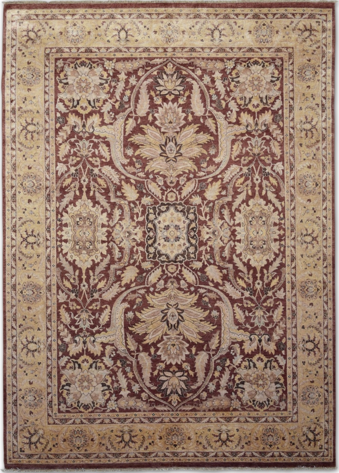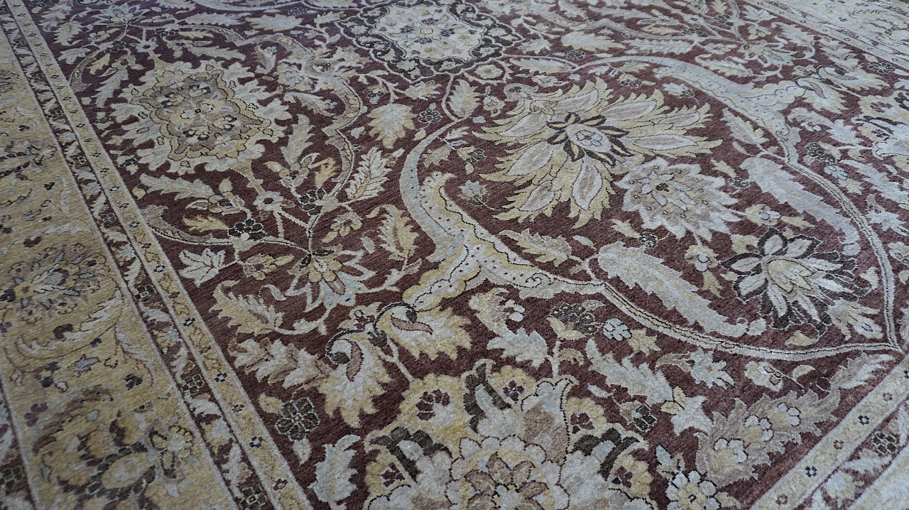 A beautiful Persian Sultanabad design using handspun high altitude wool dyed in subtle colors. Hand Knotted by master weavers of Afghanistan & painstakingly finishing process done by Pakistani Artisans makes this rug a masterpiece & takes us back to the late 19th-century era.