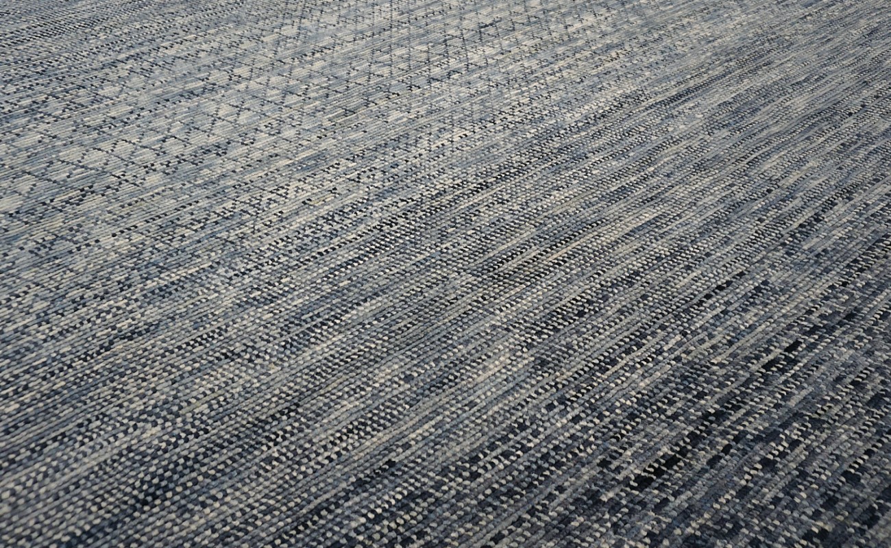 A beautiful modern design using handspun high altitude wool dyed in subtle colors & hand knotted by master weavers & painstakingly finishing process done by Artisans makes this rug a modern masterpiece.