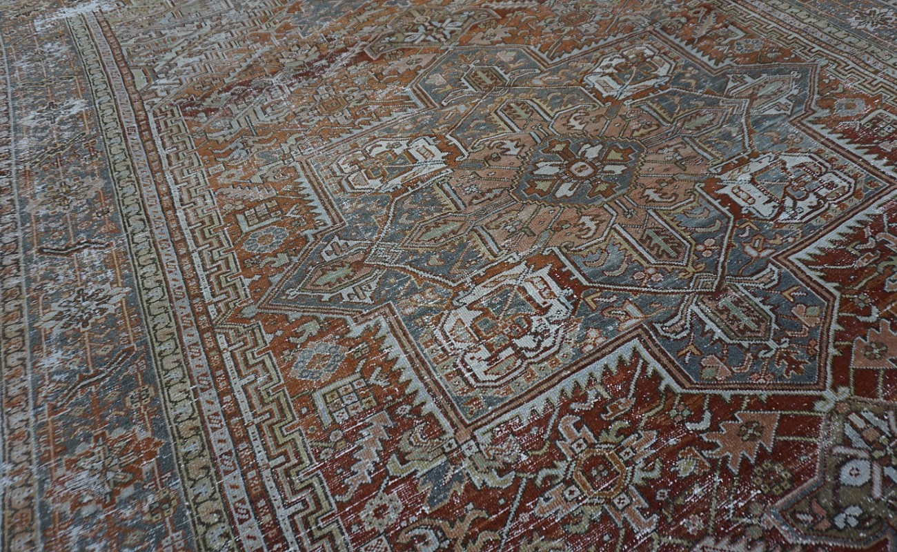 An exquisite antique Persian Heriz. Weathered and distressed extremely decorative and highly sort after master piece