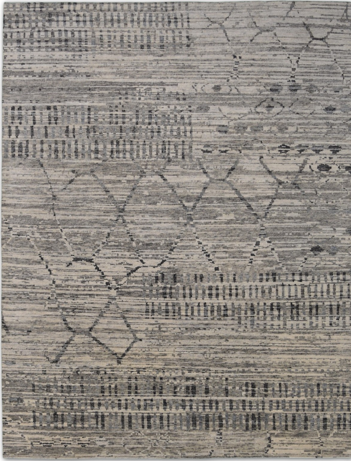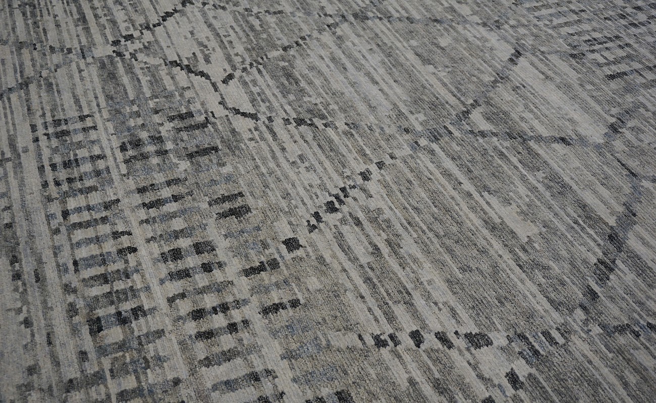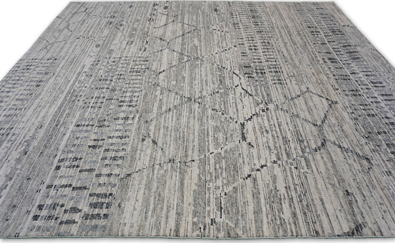 A beautiful Modern design Hand Knotted by using hand spun finest wool to give the pile softer touch done by Master Artisans. Moroccan Style Texture is also found this rug.