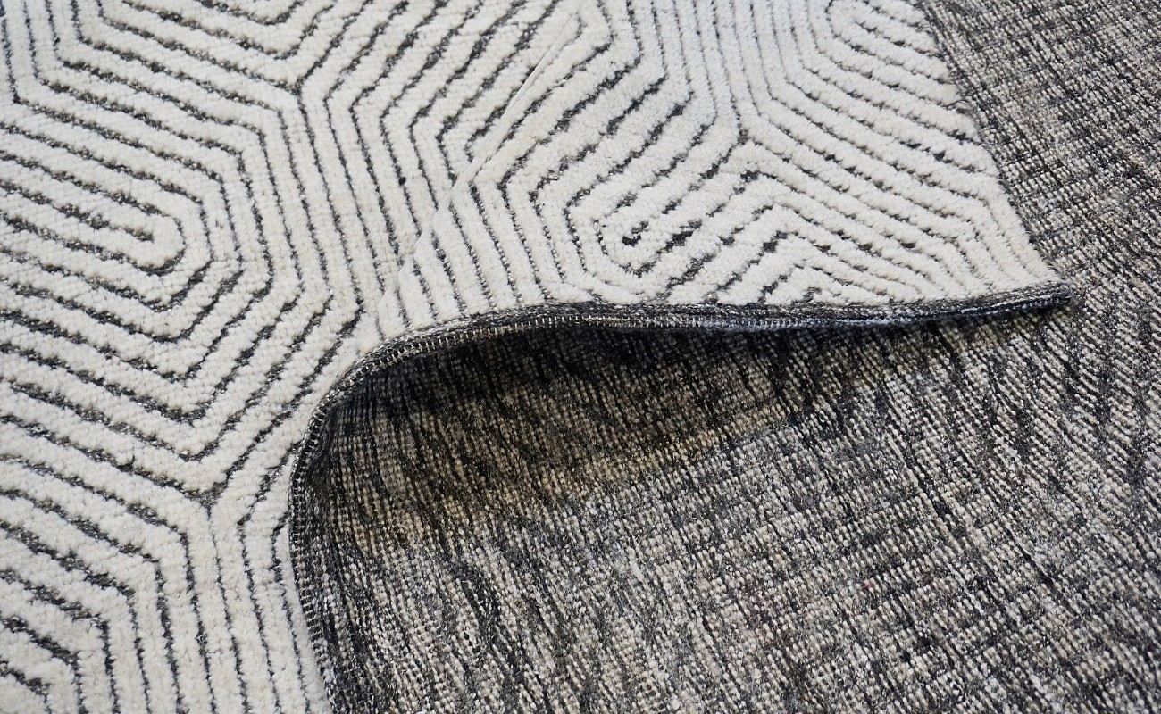 A beautiful modern design using handspun high altitude wool dyed in subtle colors & hand knotted by master weavers & painstakingly finishing process done by Artisans makes this rug a modern masterpiece.