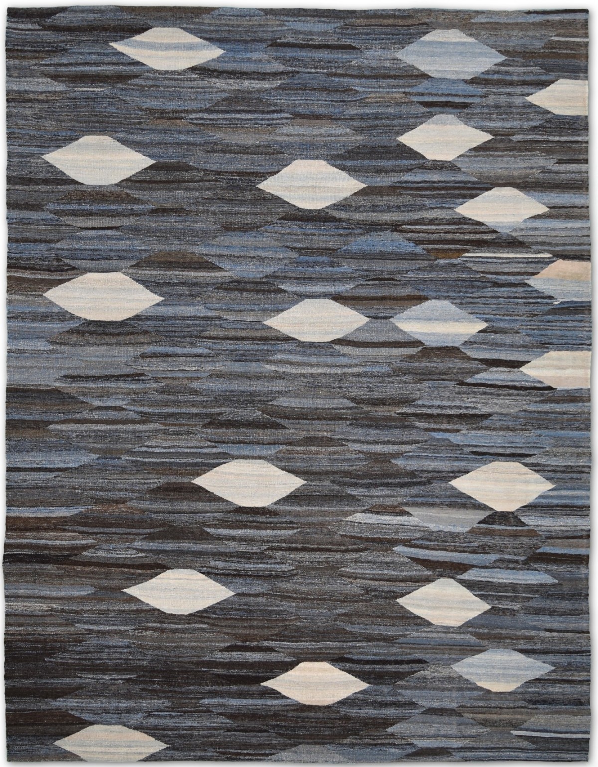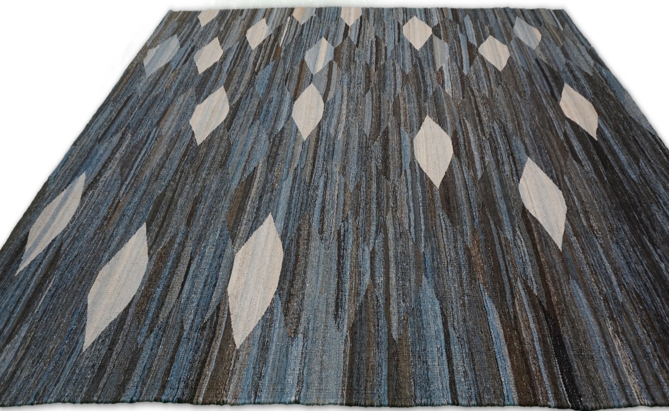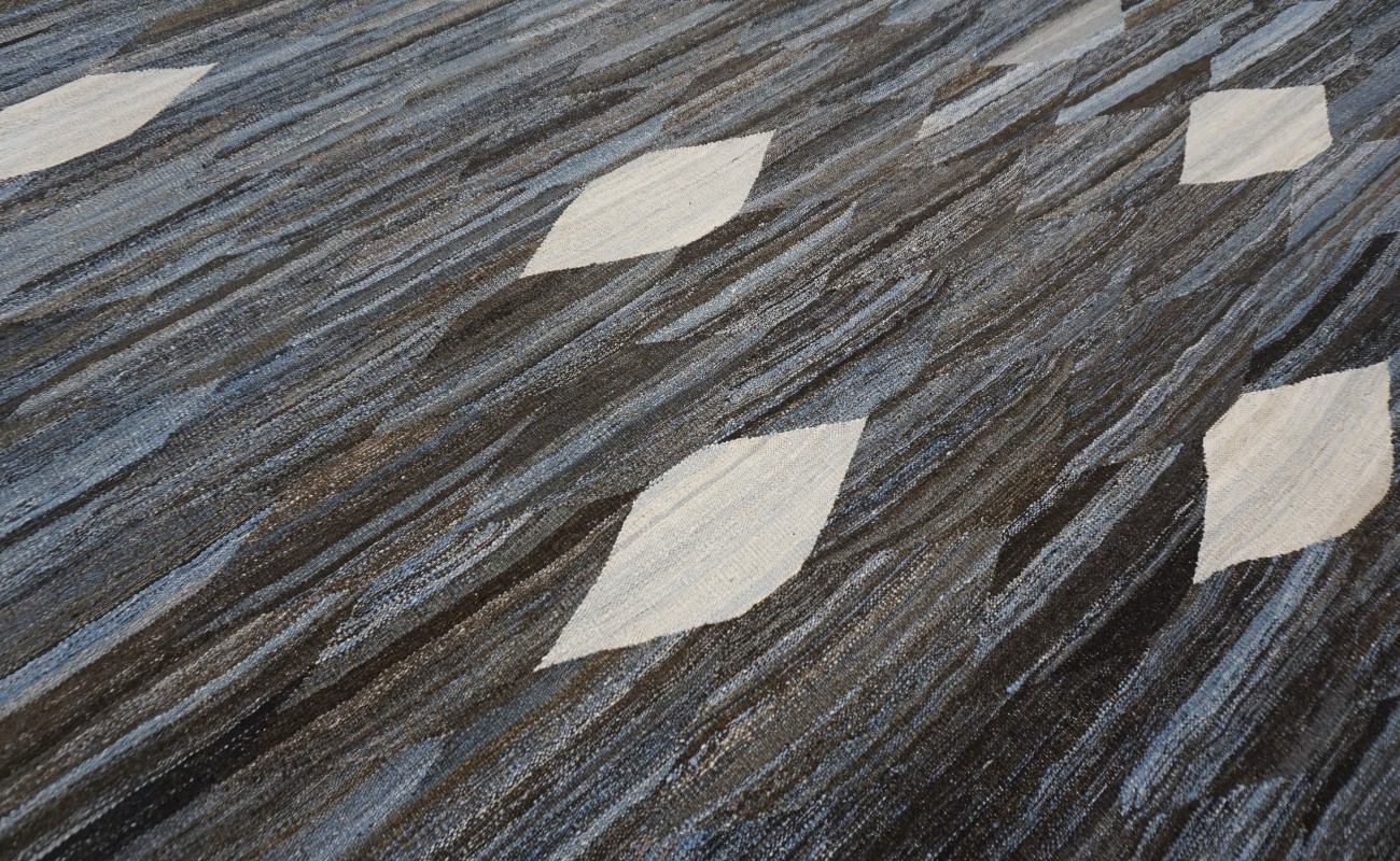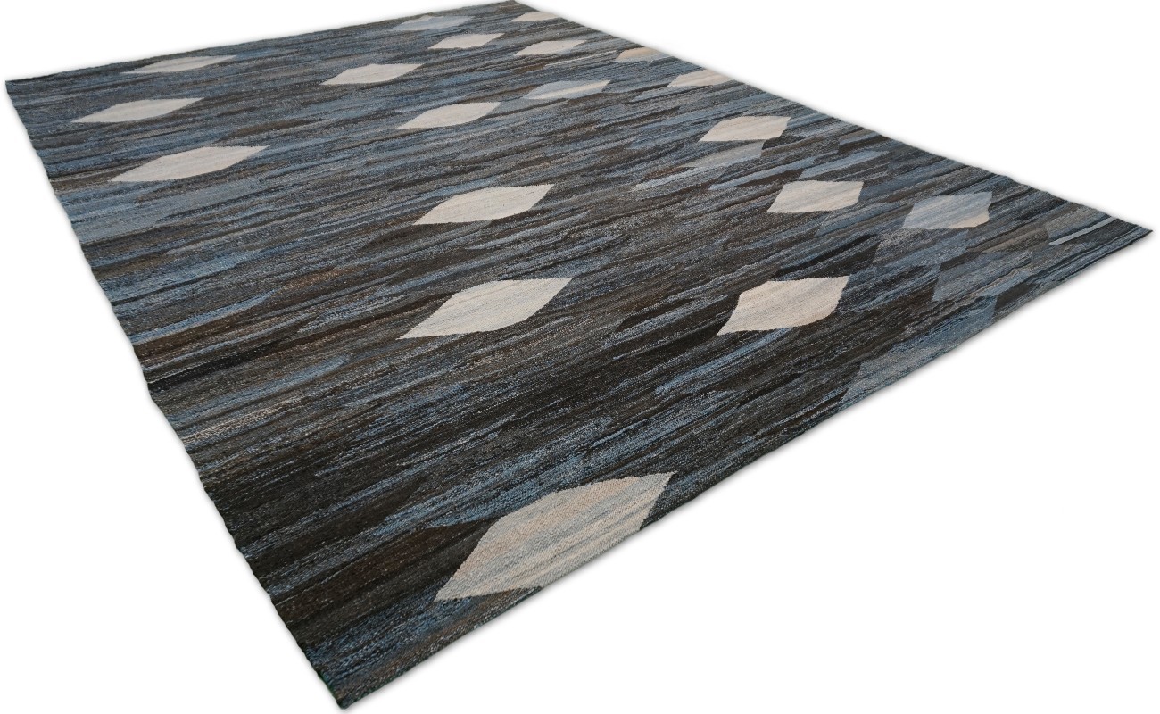 Kilims are flat woven rugs in a technique that comes from Anatolia, parts of Iran, the Caucasus, and Turkey. This Turkish style modern kilim rug is handwoven in Wool.