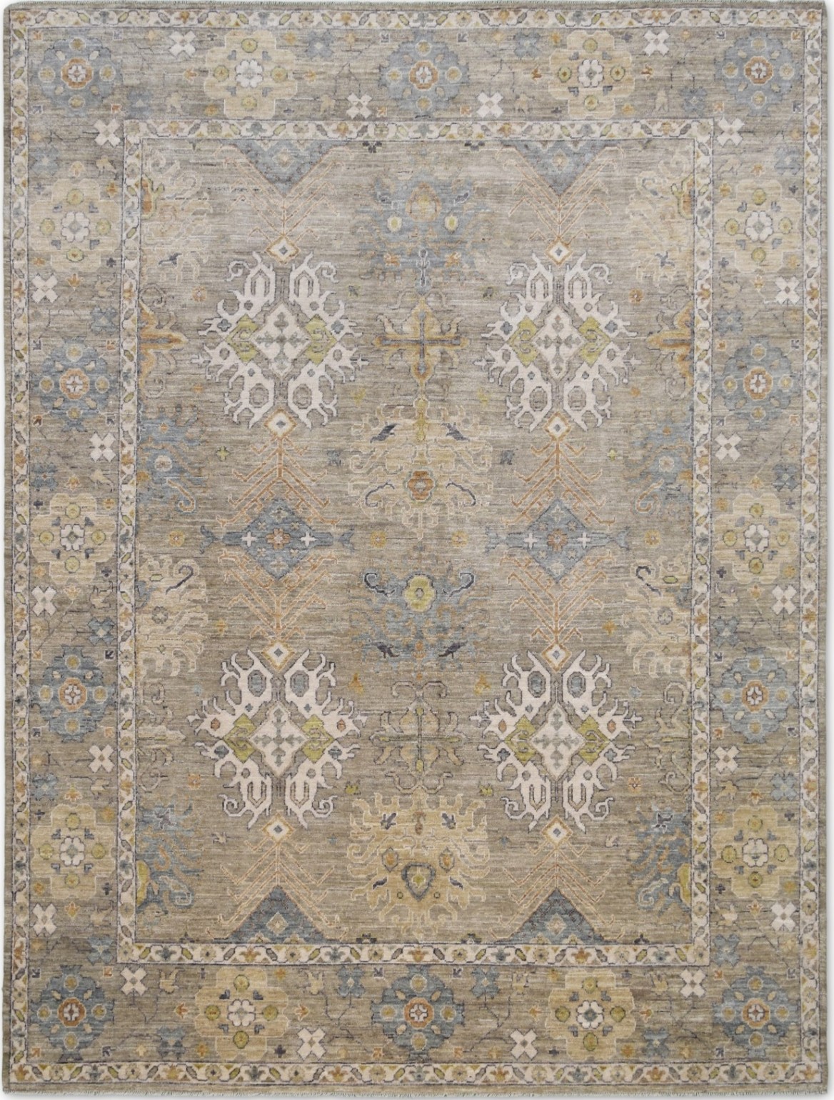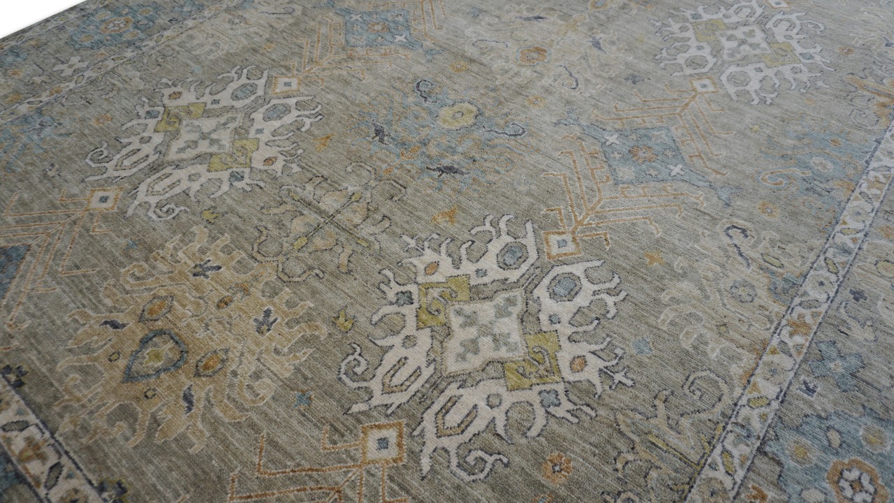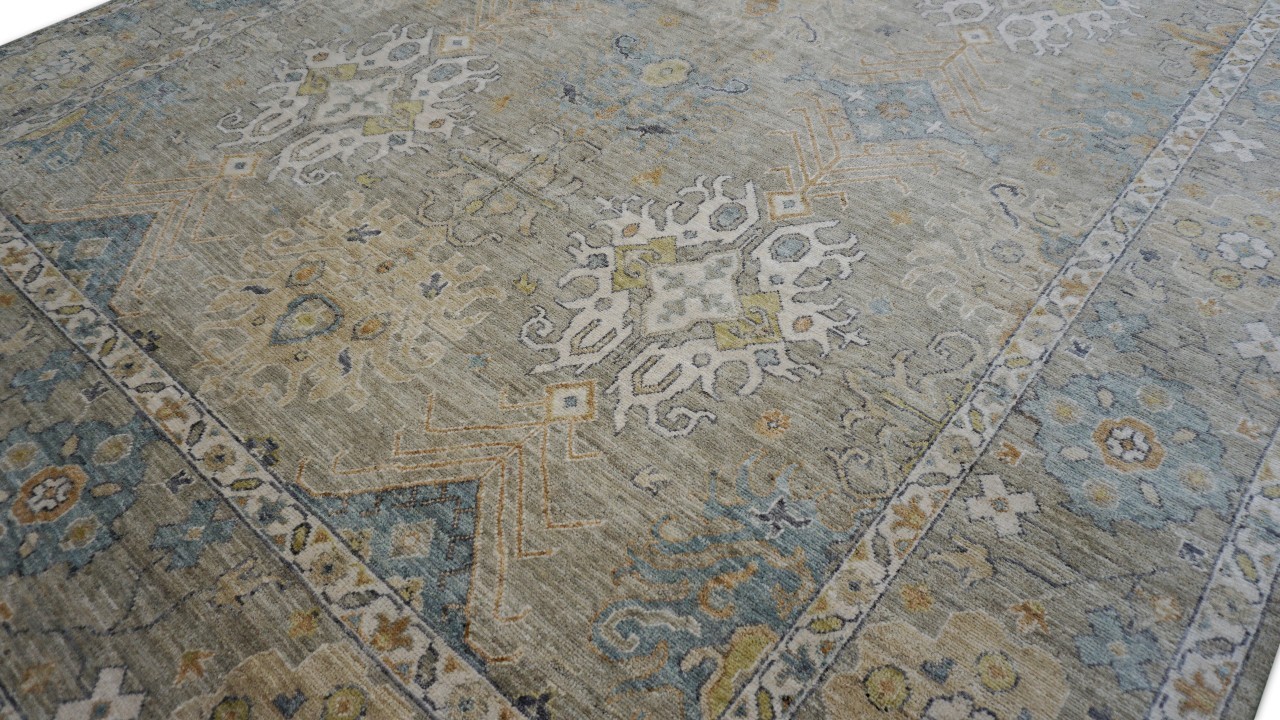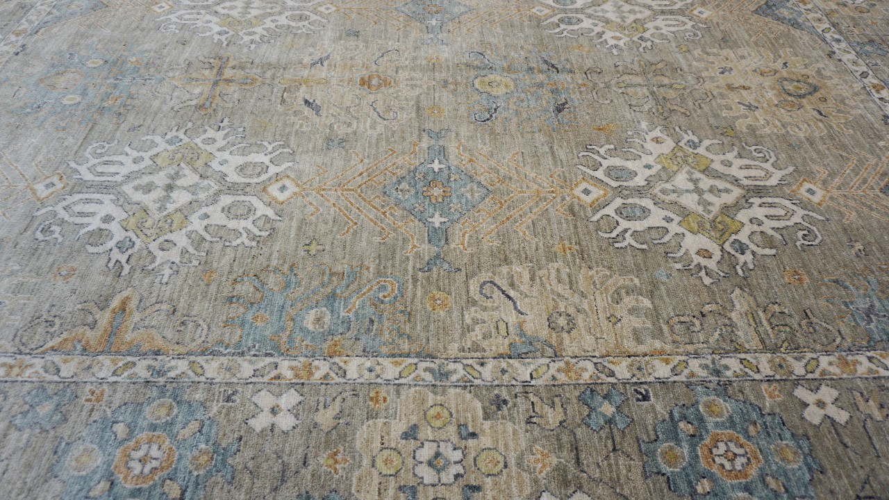 A beautiful Persian Sultanabad design using handspun high altitude wool dyed in subtle colors. Hand Knotted by master weavers of Afghanistan & painstakingly finishing process done by Pakistani Artisans makes this rug a masterpiece & takes us back to the late 19th-century era.