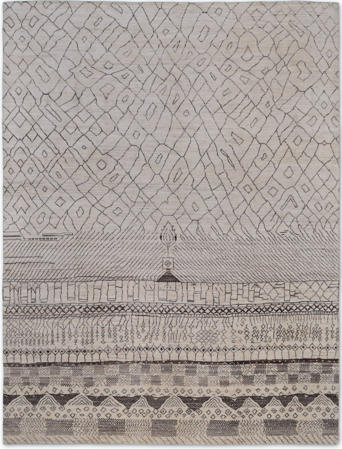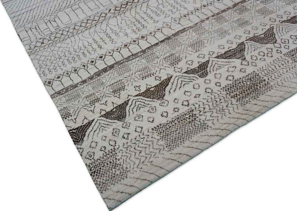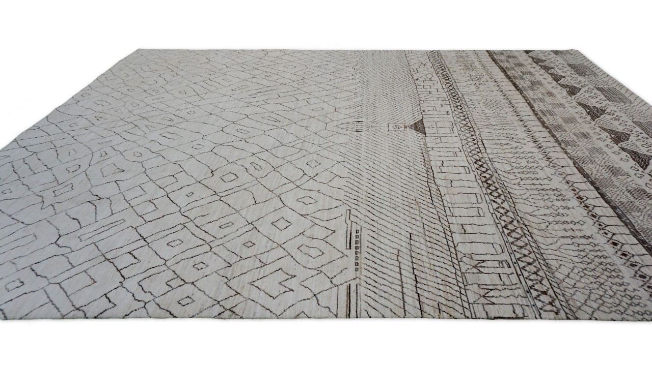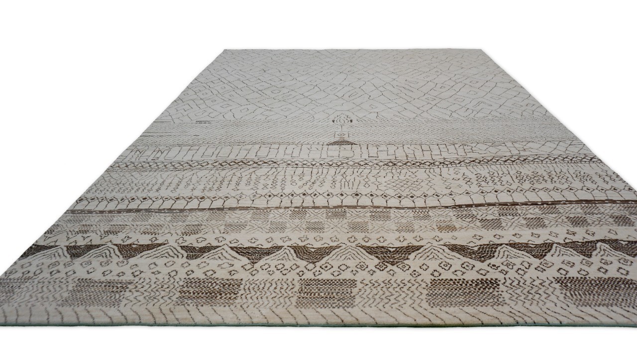 A beautiful modern design using handspun high altitude wool dyed in subtle colors & hand knotted by master weavers & painstakingly finishing process done by Artisans makes this rug a modern masterpiece.