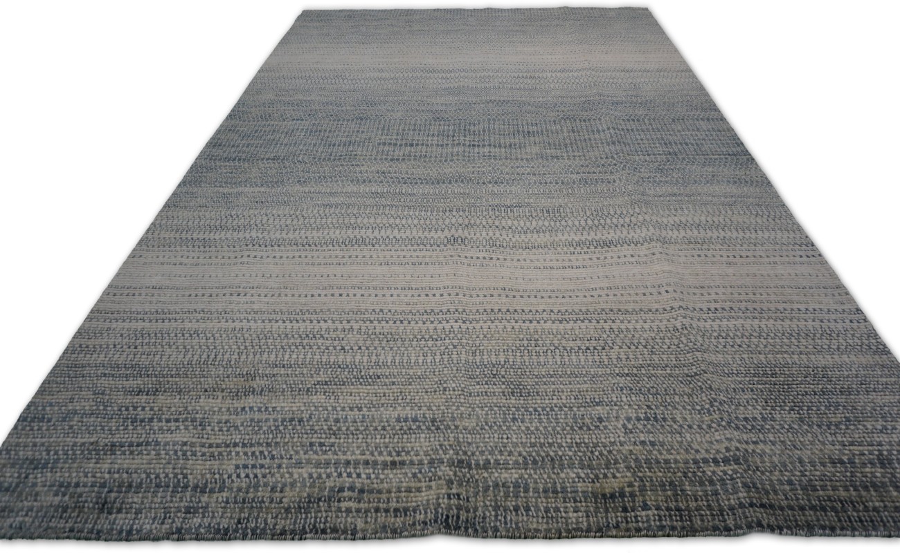 A beautiful modern design using handspun high altitude wool dyed in subtle colors & hand knotted by master weavers & painstakingly finishing process done by Artisans makes this rug a modern masterpiece.