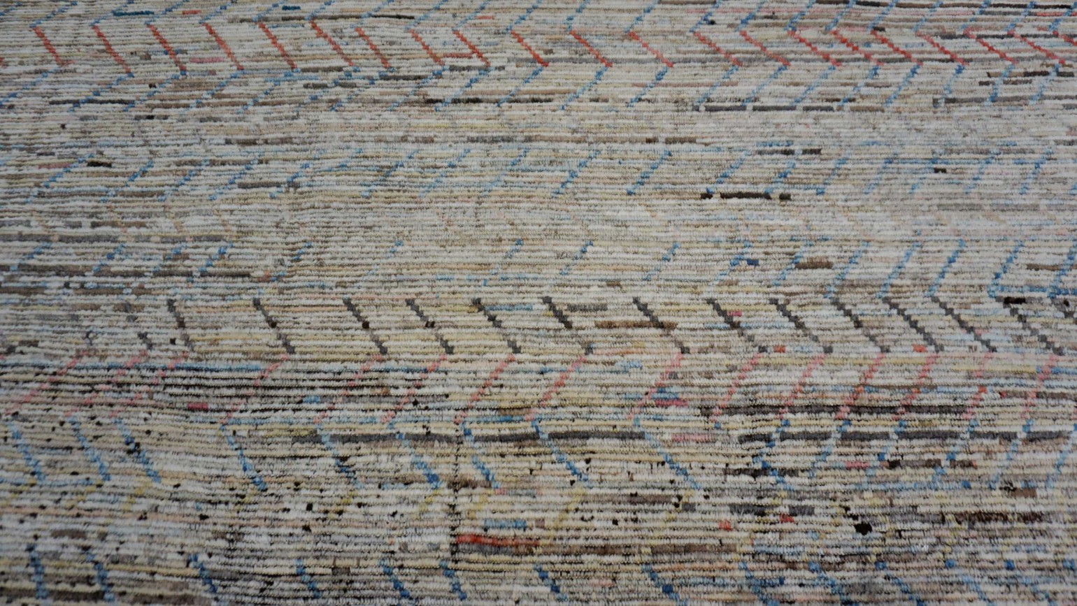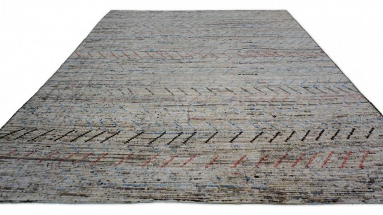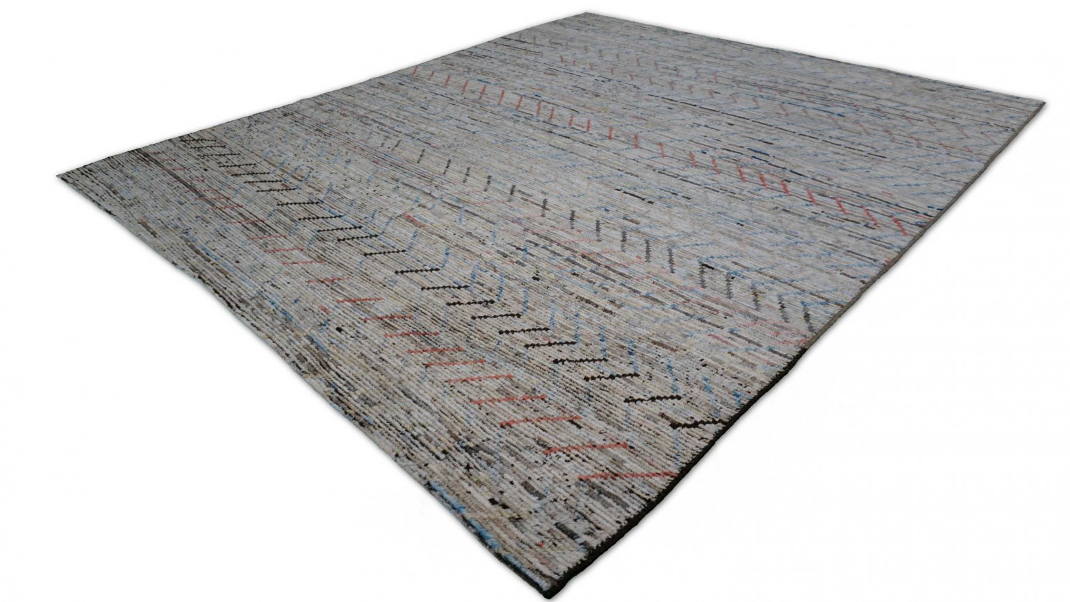 A beautiful modern design using handspun high altitude wool dyed in subtle colors & hand knotted by master weavers & painstakingly finishing process done by Artisans makes this rug a modern masterpiece.
