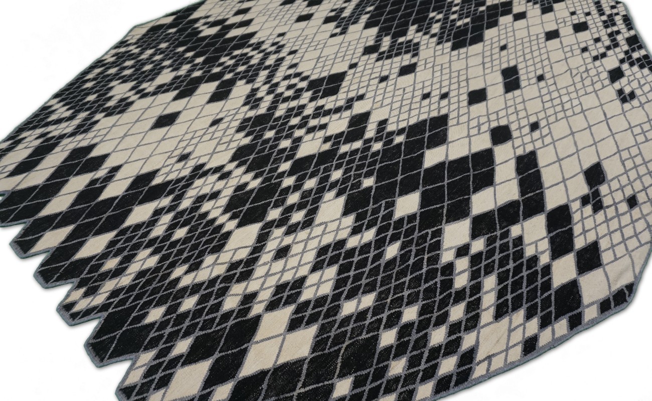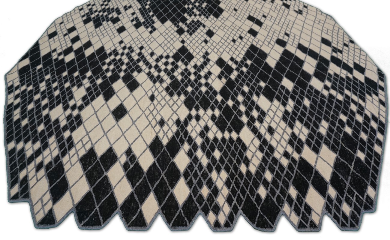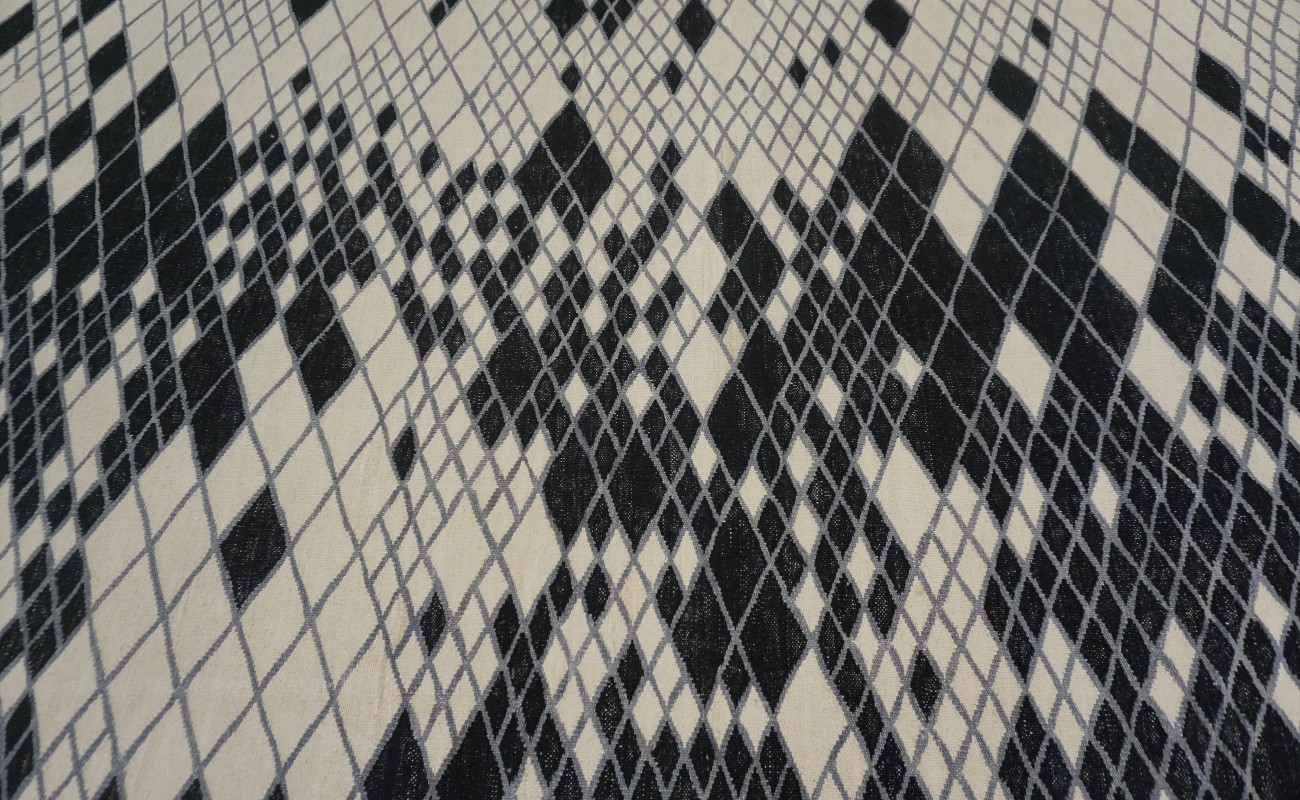 Kilims are flat woven rugs in a technique that comes from Anatolia, parts of Iran, the Caucasus, and Turkey. This Turkish style modern kilim rug is handwoven in Wool.