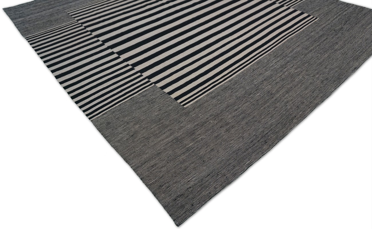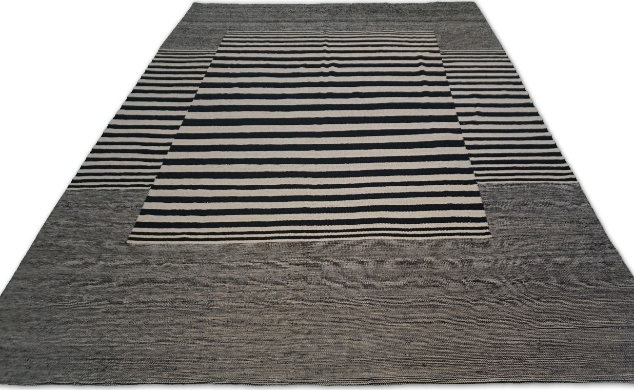 Kilims are flat woven rugs in a technique that comes from Anatolia, parts of Iran, the Caucasus, and Turkey. This Turkish style modern kilim rug is handwoven in Wool.