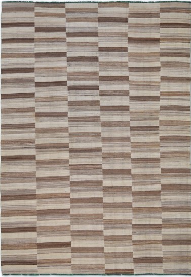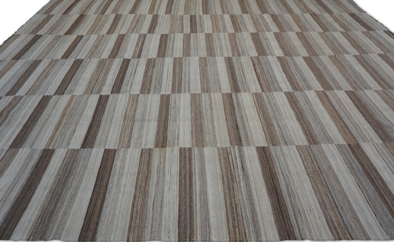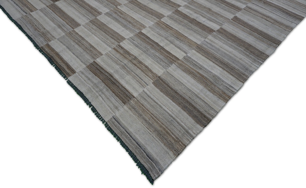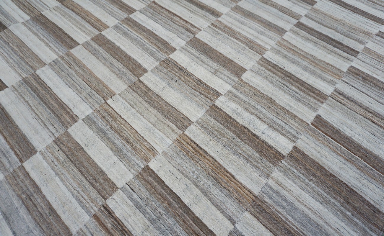 Kilims are flat woven rugs in a technique that comes from Anatolia, parts of Iran, the Caucasus, and Turkey. This Turkish style modern kilim rug is handwoven in Wool.