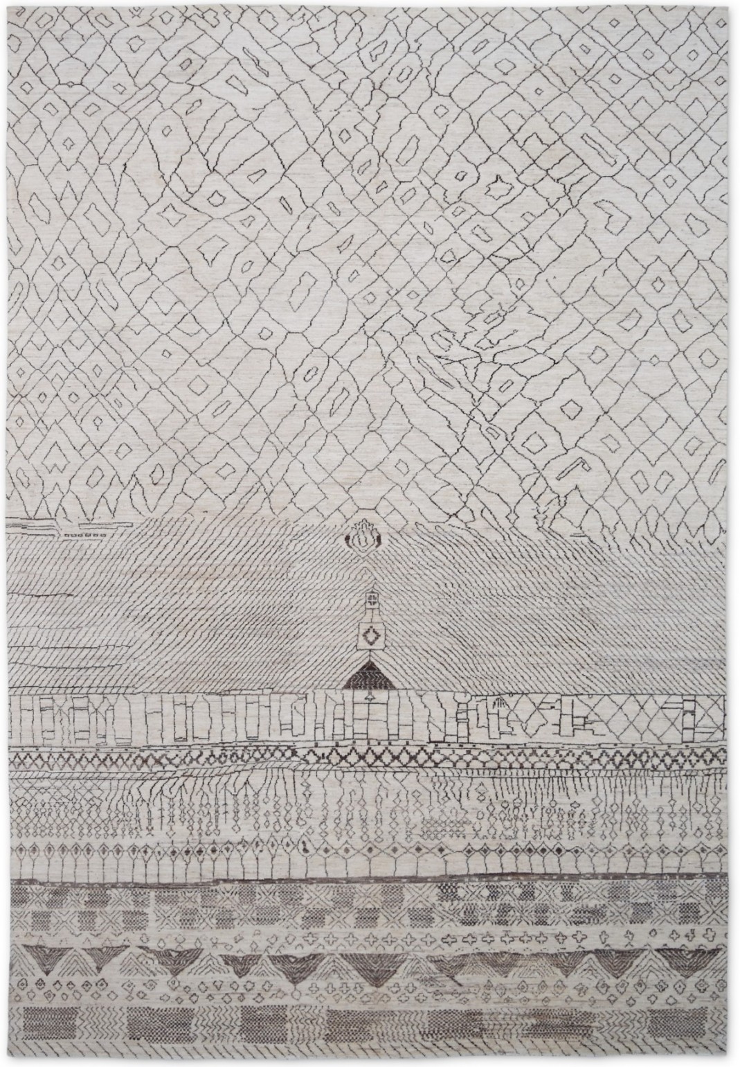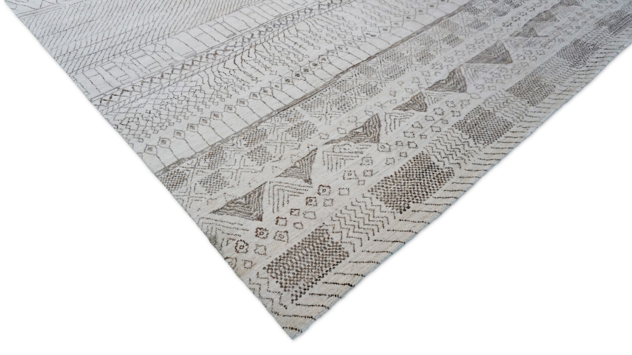 A beautiful modern design using handspun high altitude wool dyed in subtle colors & hand knotted by master weavers & painstakingly finishing process done by Artisans makes this rug a modern masterpiece.