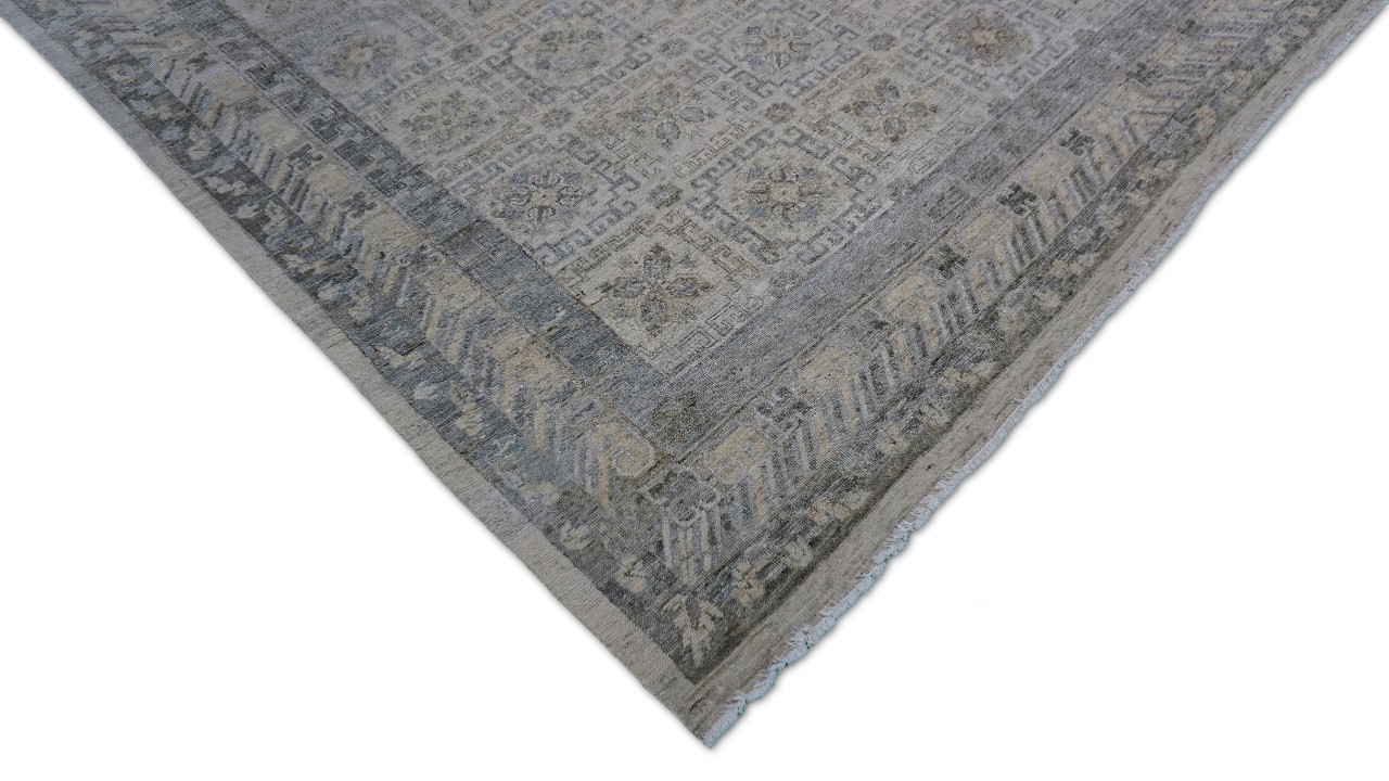 A beautiful Persian Sultanabad design using handspun high altitude wool dyed in subtle colors. Hand Knotted by master weavers & painstakingly finishing process done by Artisans makes this rug a masterpiece & takes us back to the late 19th-century era.