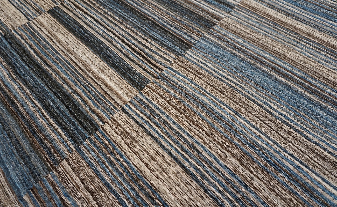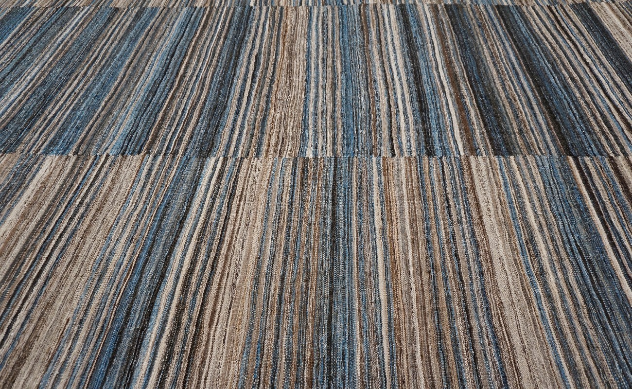 Kilims are flat woven rugs in a technique that comes from Anatolia, parts of Iran, the Caucasus, and Turkey. This Turkish style modern kilim rug is handwoven in Wool.