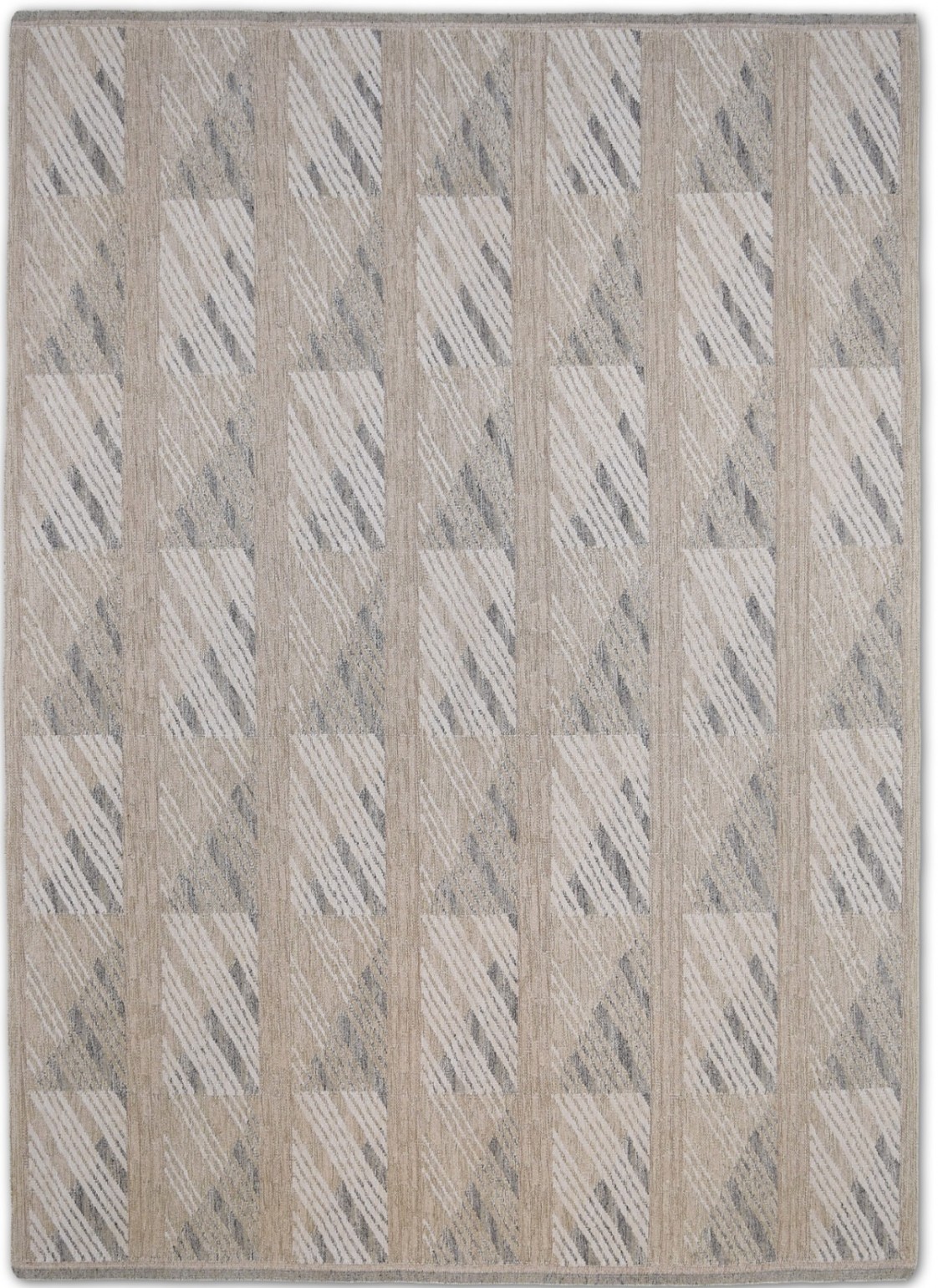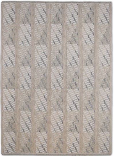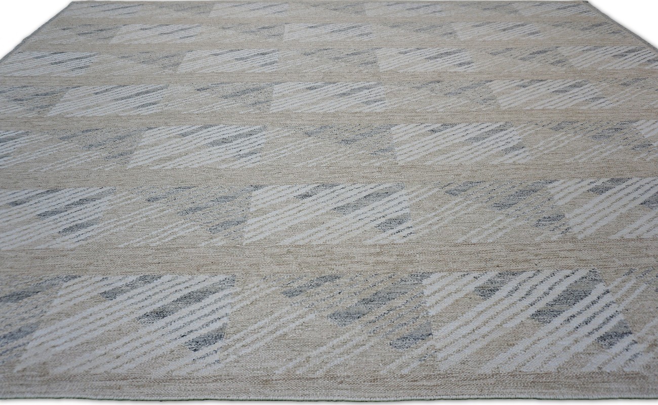 A modern hand knotted Swedish design wool rug offers a flatweave but sturdy ground.
