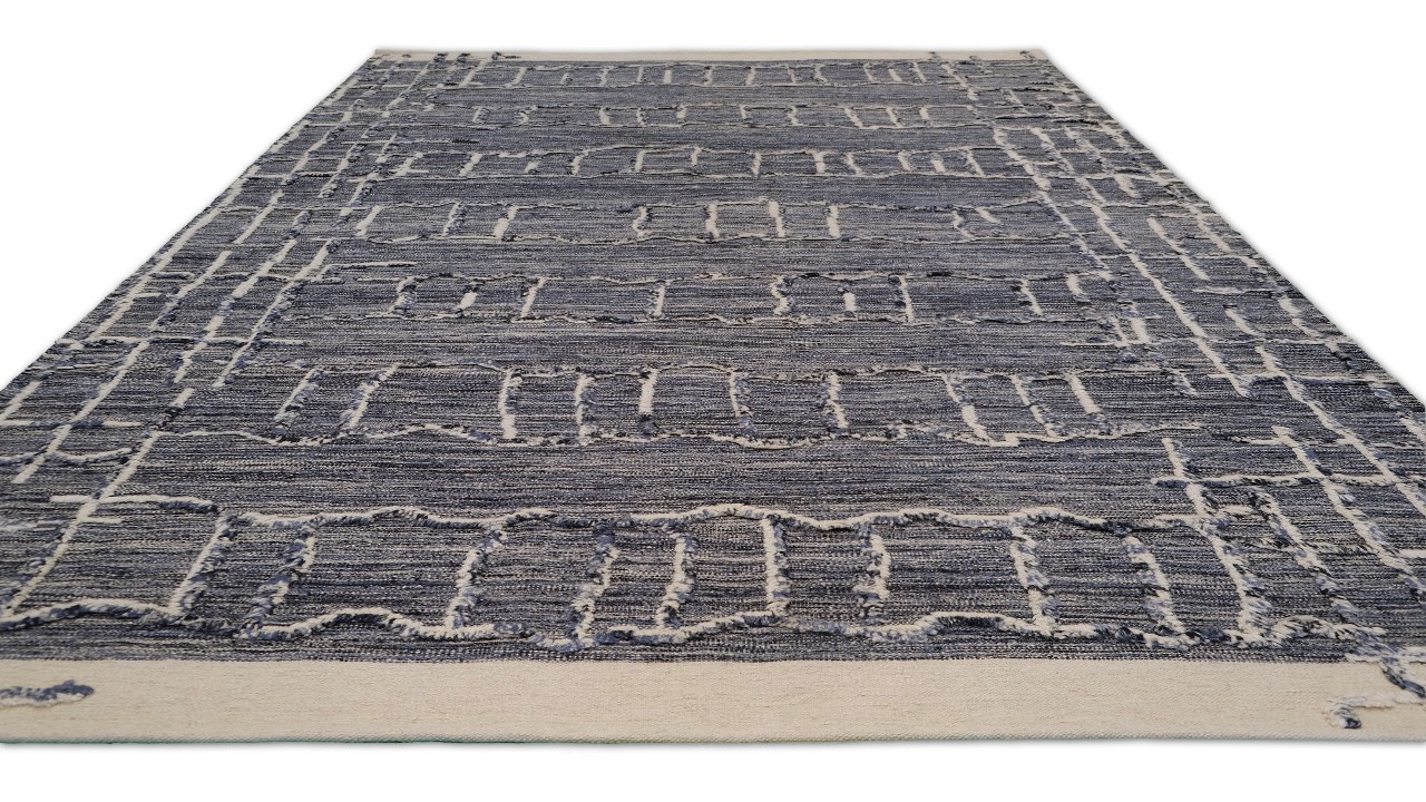 A beautiful modern design using handspun high altitude wool dyed in subtle colors & hand knotted by master weavers & painstakingly finishing process done by Artisans makes this rug a modern masterpiece.