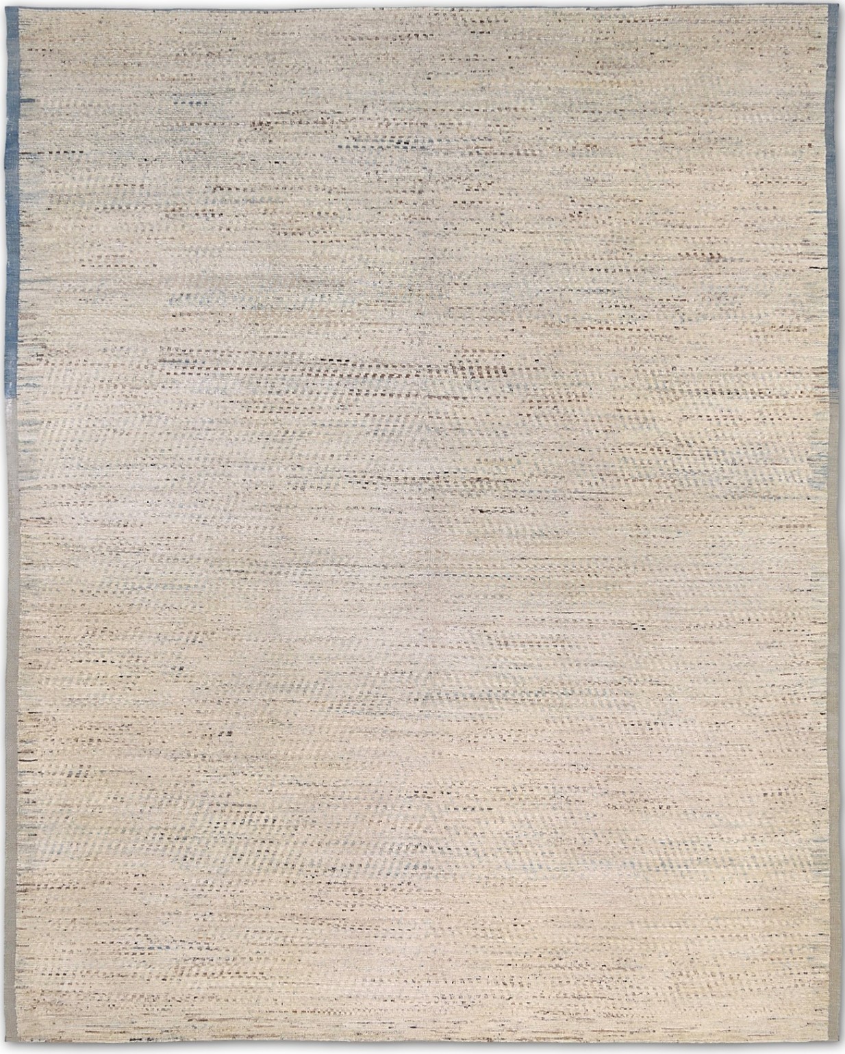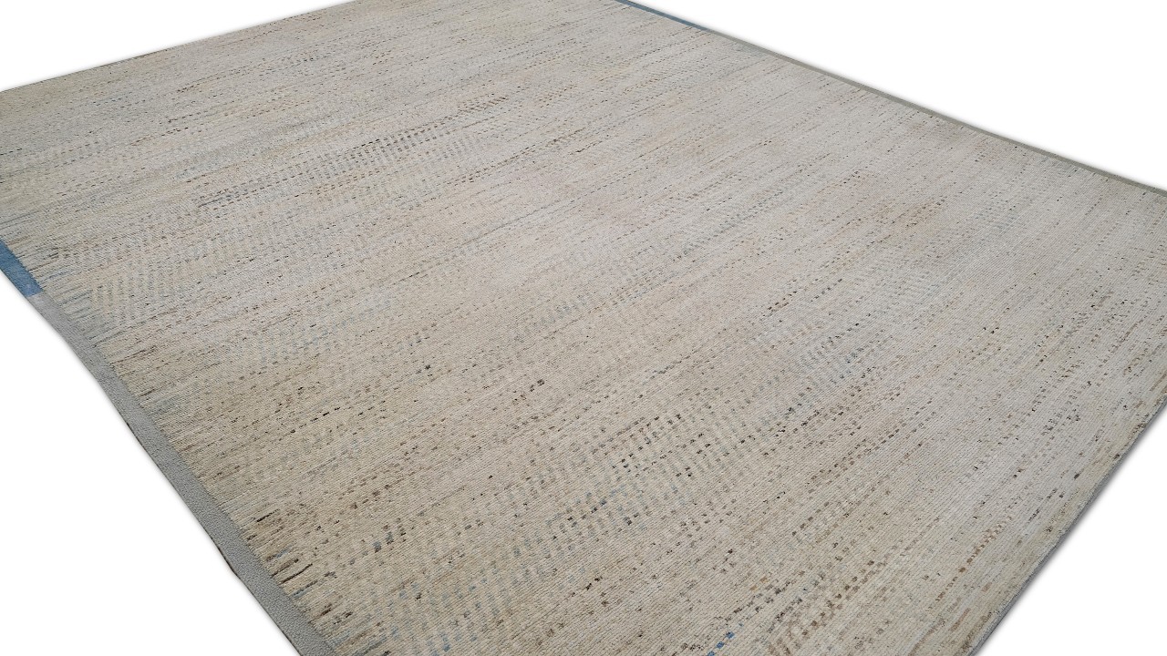 A beautiful modern design using handspun high altitude wool dyed in subtle colors & hand knotted by master weavers & painstakingly finishing process done by Artisans makes this rug a modern masterpiece.