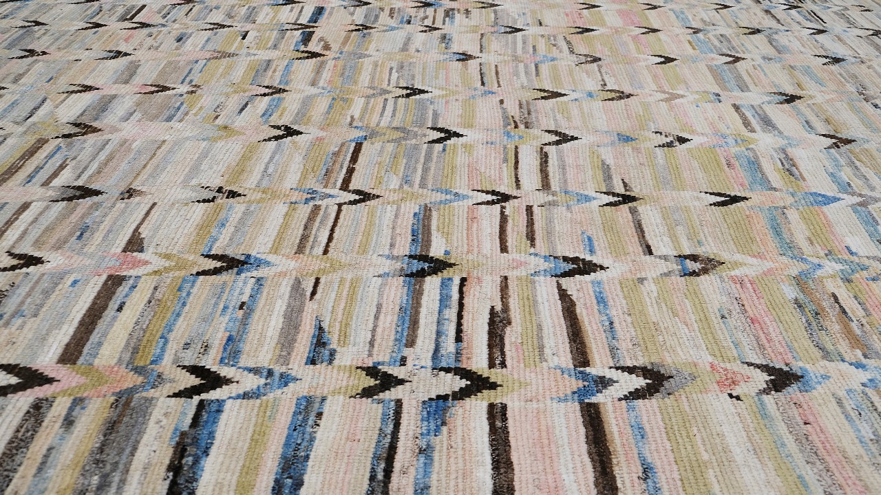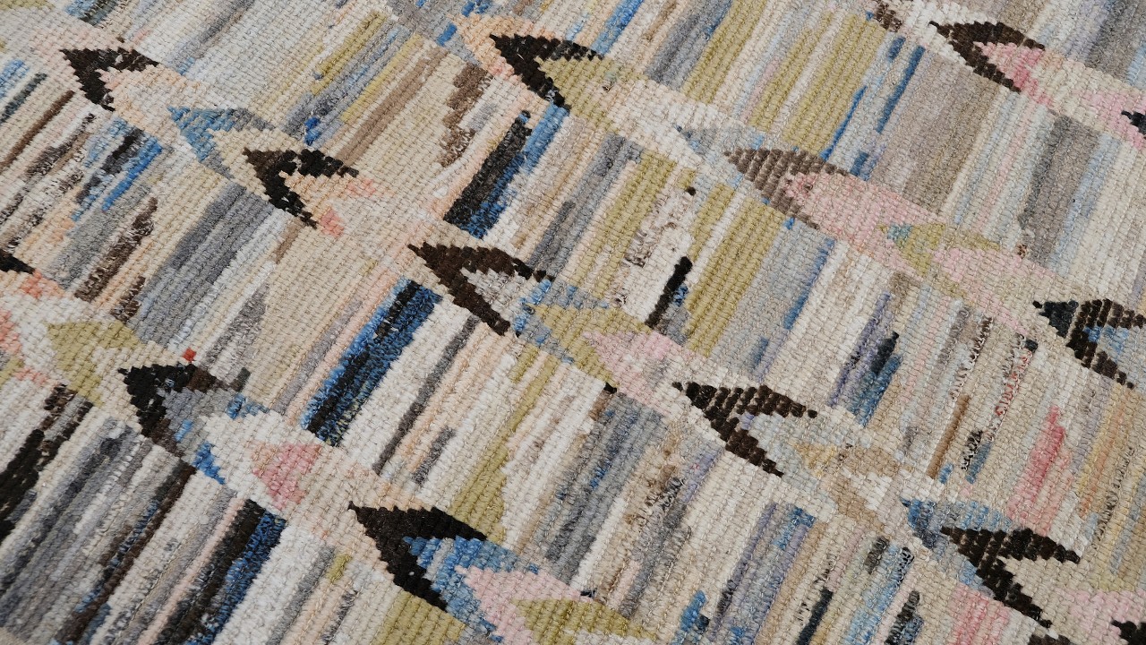 A beautiful modern design using handspun high altitude wool dyed in subtle colors & hand knotted by master weavers & painstakingly finishing process done by Artisans makes this rug a modern masterpiece.
