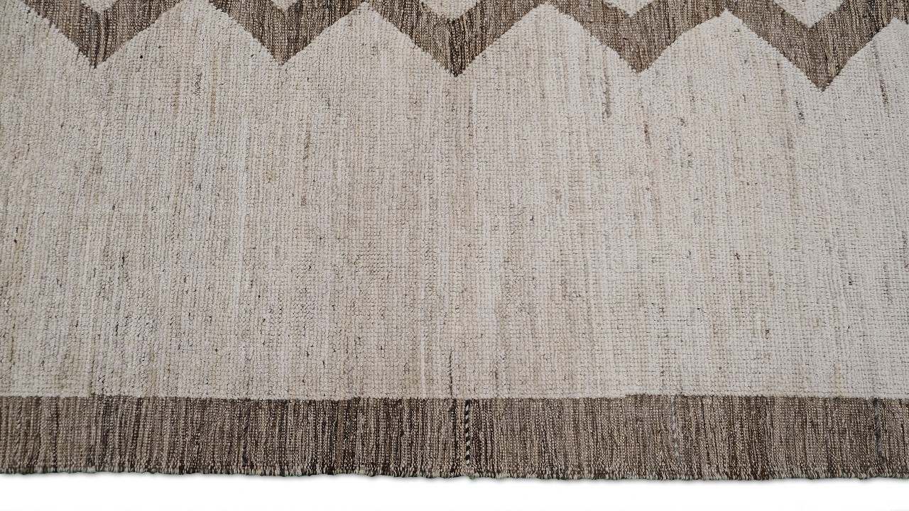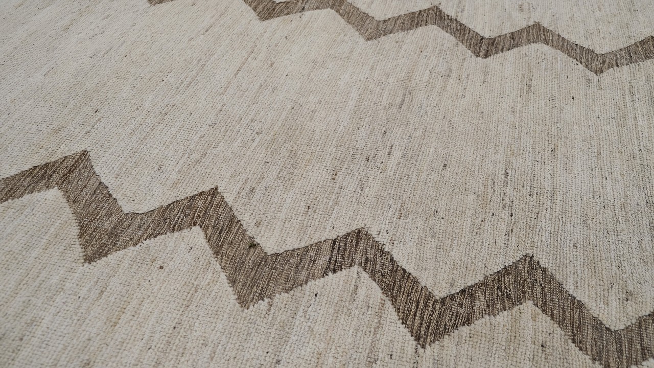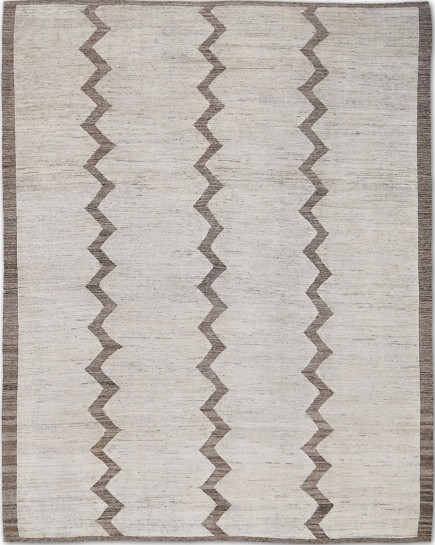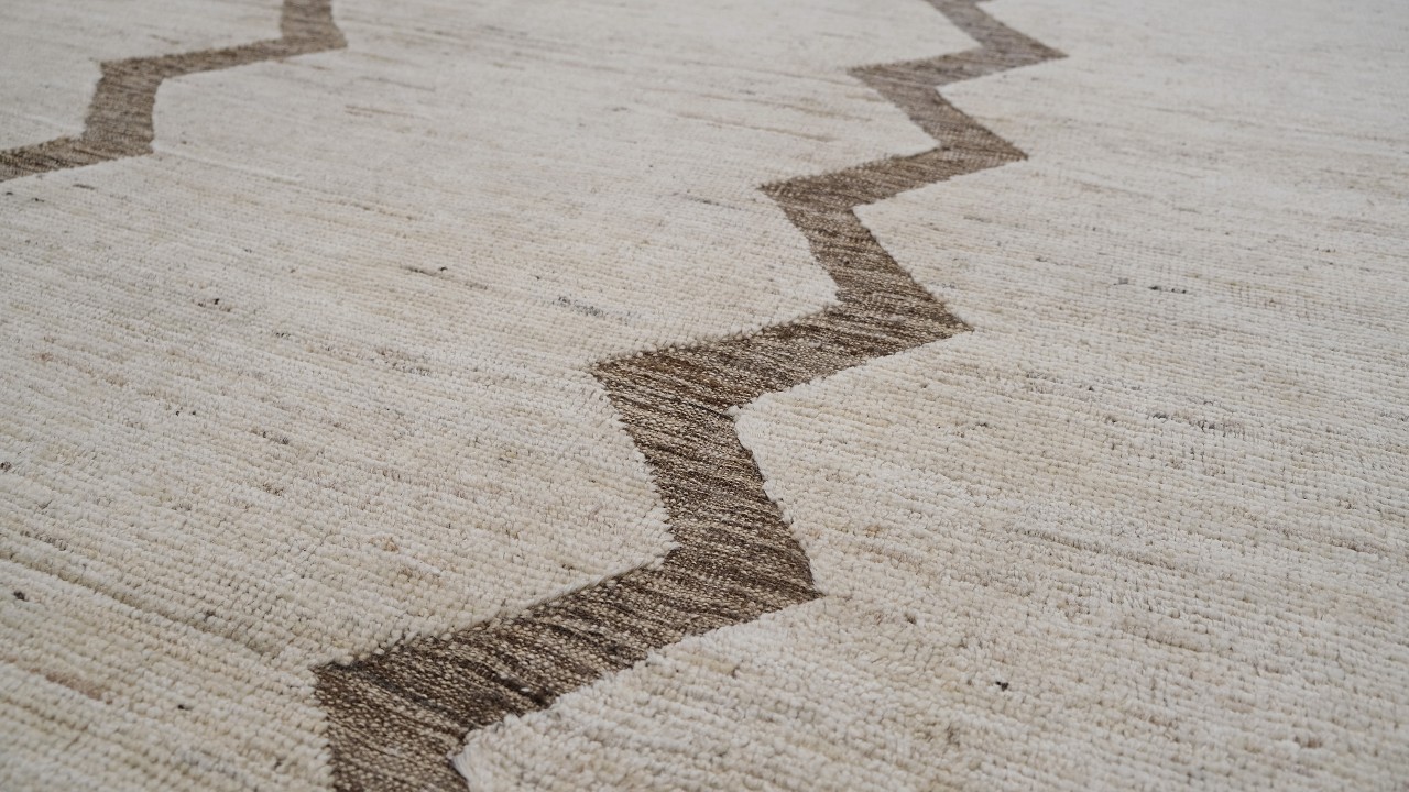 A beautiful modern design using handspun high altitude wool dyed in subtle colors & hand knotted by master weavers & painstakingly finishing process done by Artisans makes this rug a modern masterpiece.