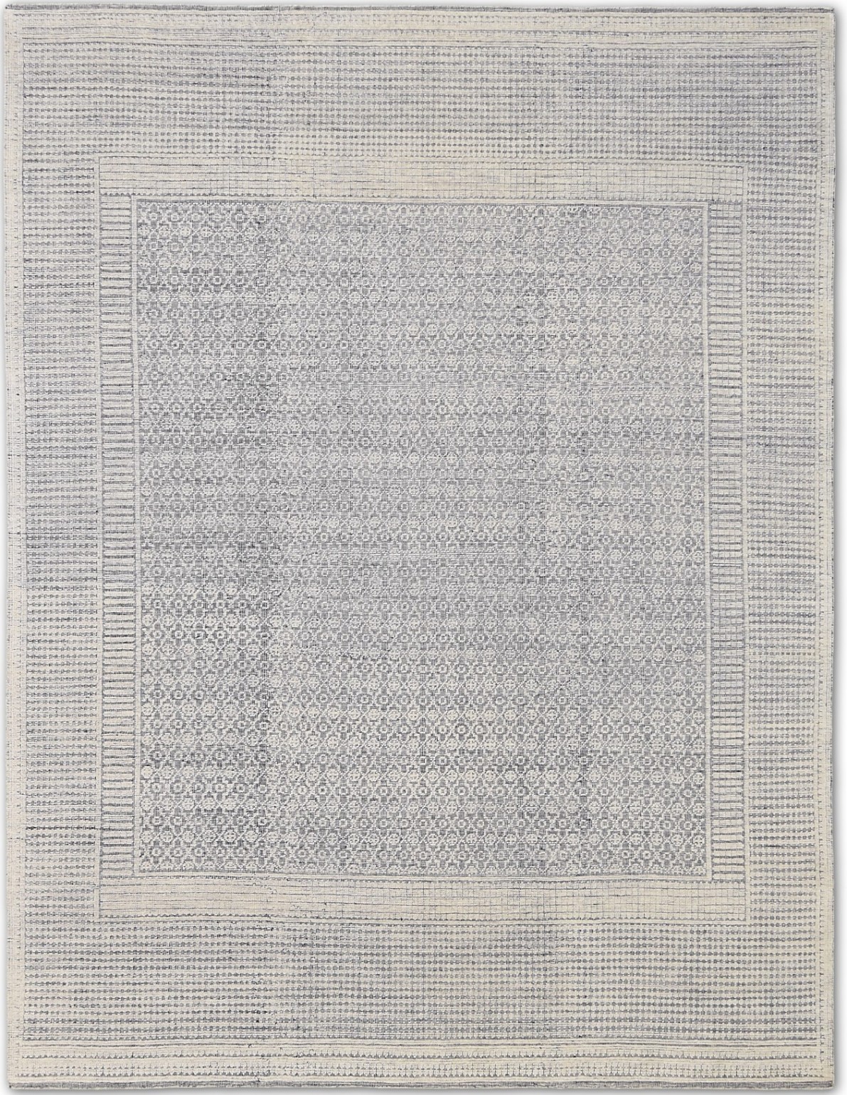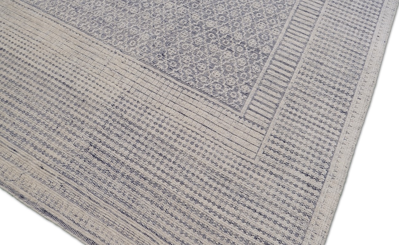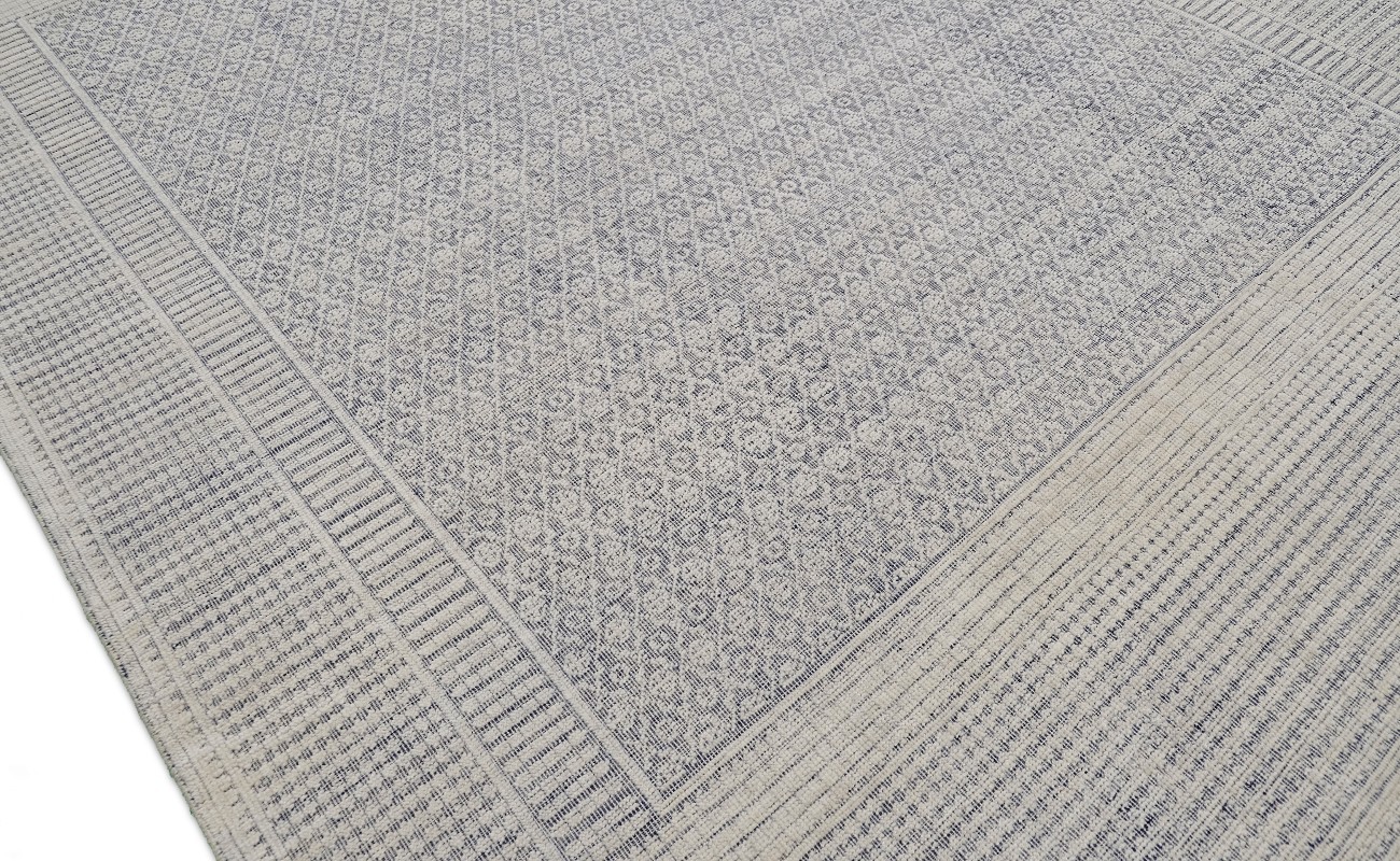 A beautiful modern design using handspun high altitude wool dyed in subtle colors & hand knotted by master weavers & painstakingly finishing process done by Artisans makes this rug a modern masterpiece.