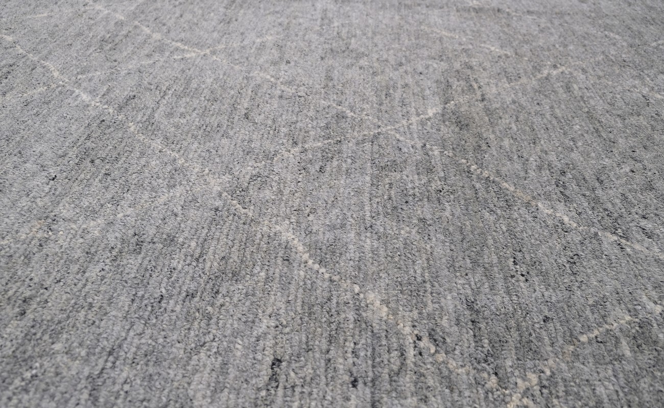 A beautiful modern design using handspun high altitude wool dyed in subtle colors & hand knotted by master weavers & painstakingly finishing process done by Artisans makes this rug a modern masterpiece.