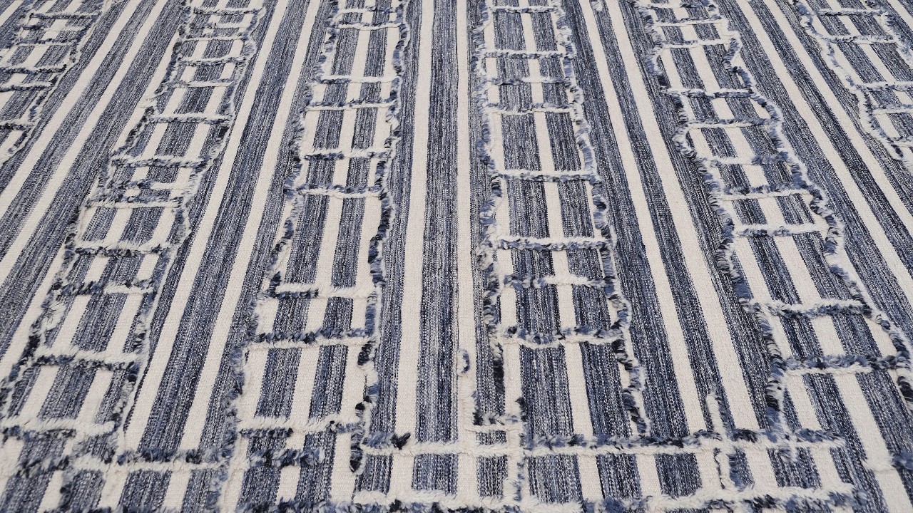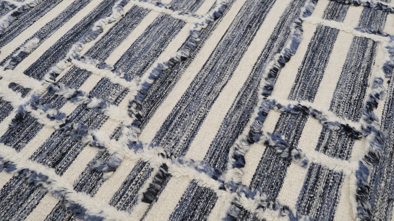 A beautiful modern design using handspun high altitude wool dyed in subtle colors & hand knotted by master weavers & painstakingly finishing process done by Artisans makes this rug a modern masterpiece.