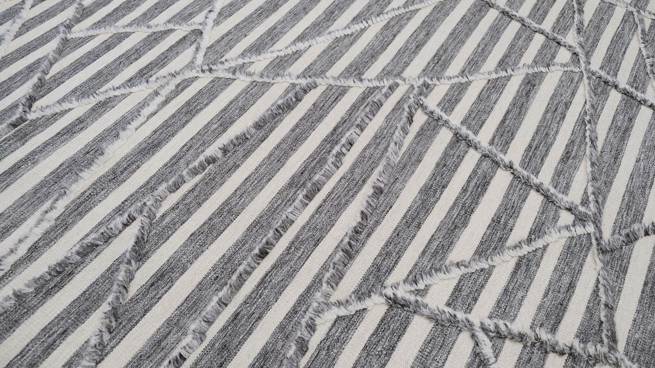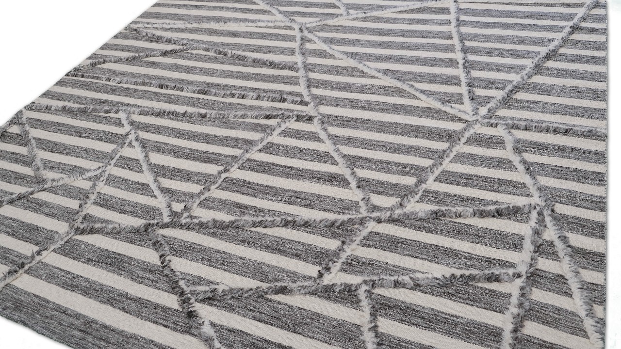 A beautiful modern design using handspun high altitude wool dyed in subtle colors & hand knotted by master weavers & painstakingly finishing process done by Artisans makes this rug a modern masterpiece.