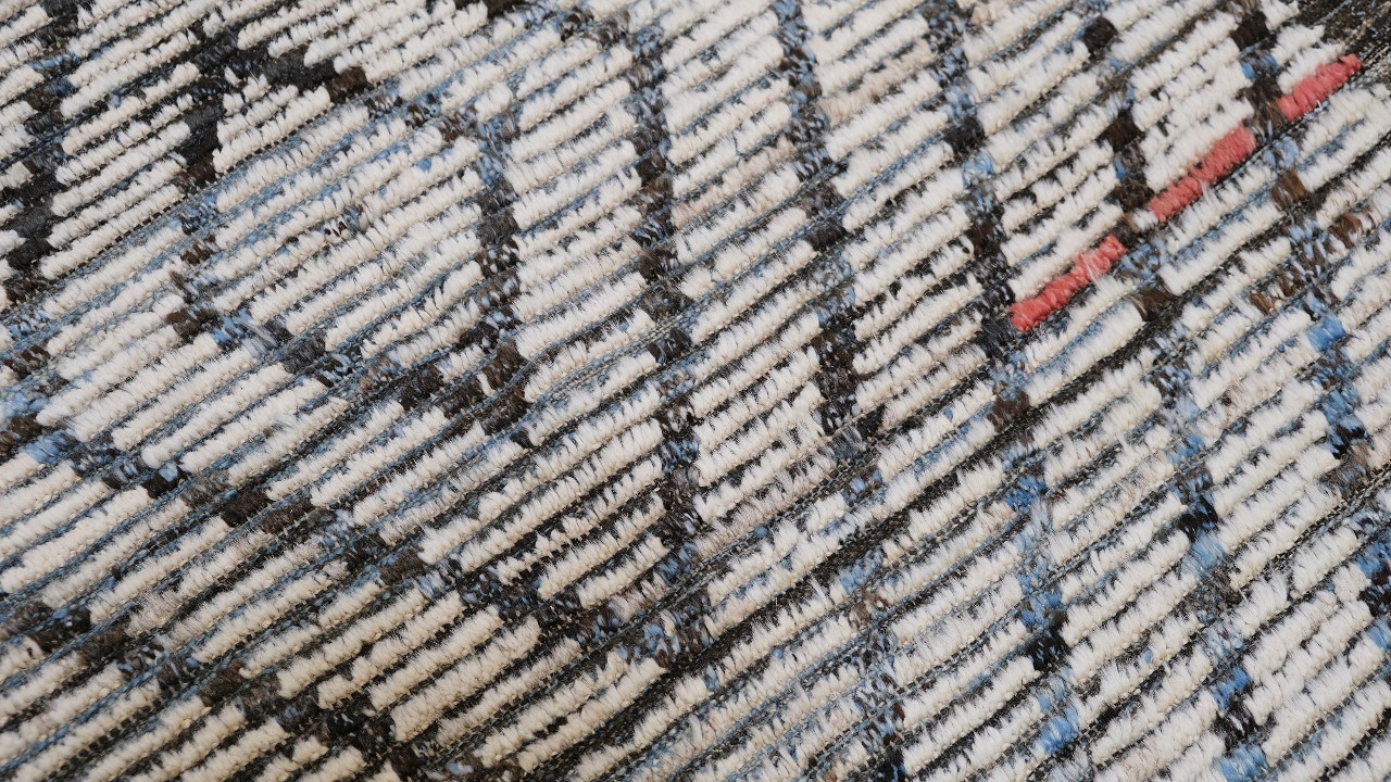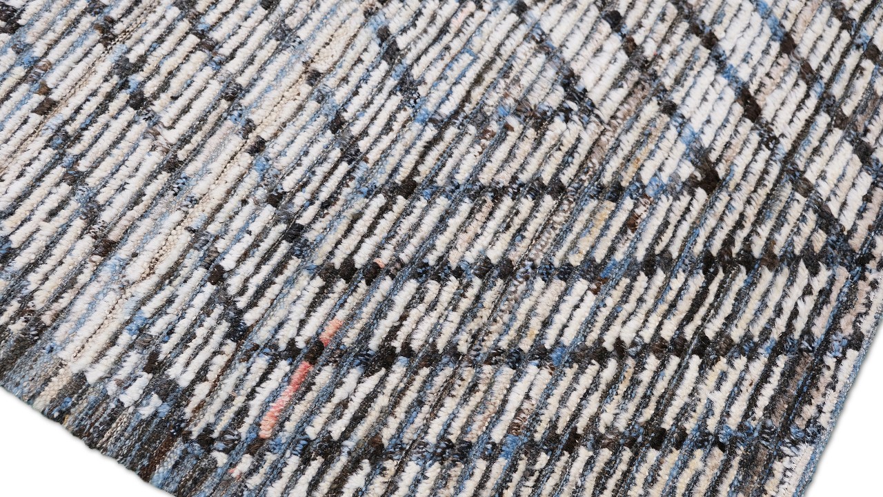 A beautiful modern design using handspun high altitude wool dyed in subtle colors & hand knotted by master weavers & painstakingly finishing process done by Artisans makes this rug a modern masterpiece.