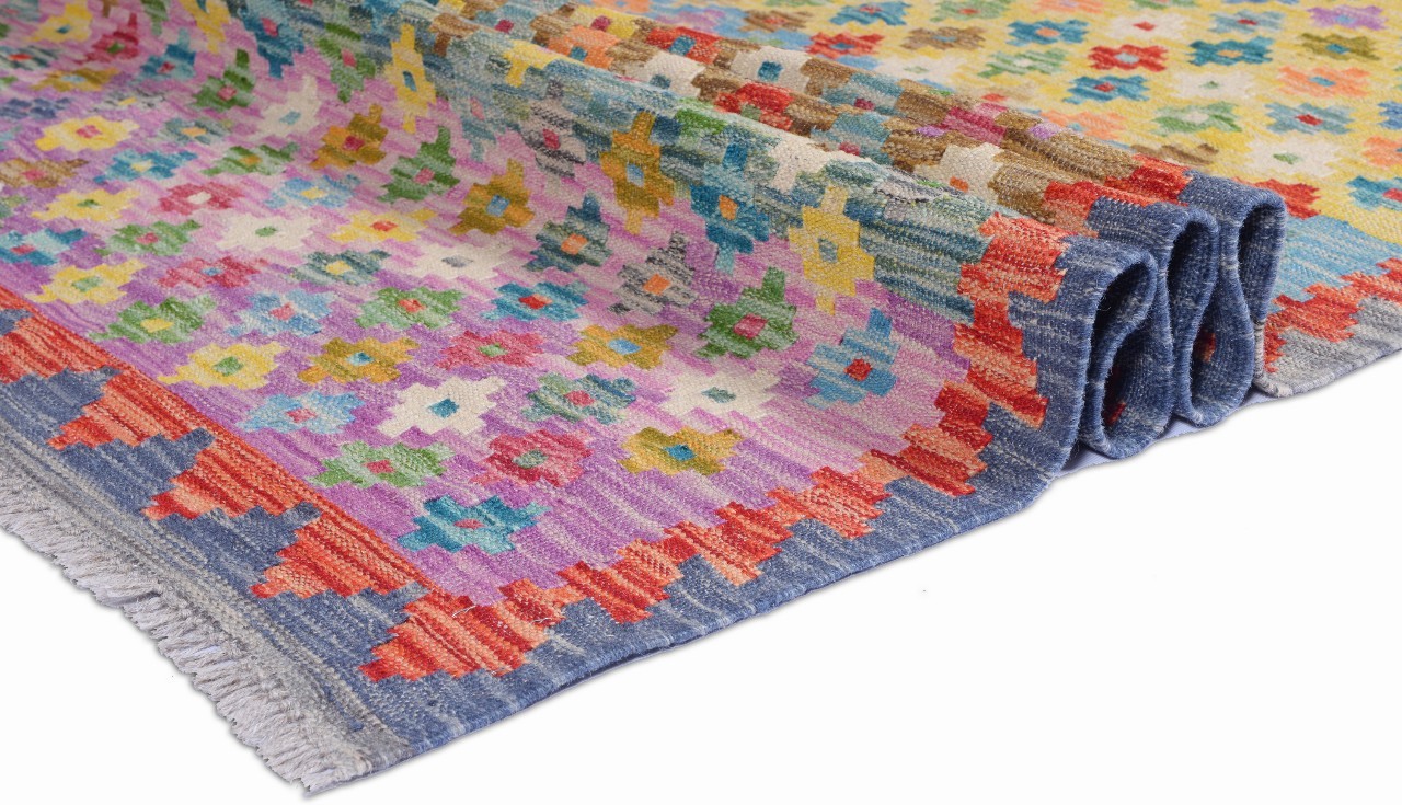 Hand Woven colorful Kilims uses vegitable dyes and handspun wool. Morrocan style pattern makes them a great option when you need a little character.