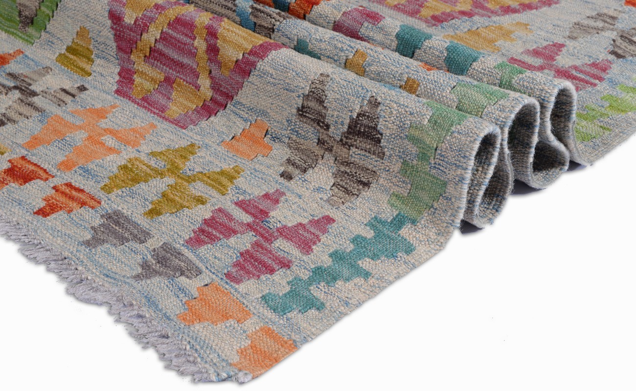 Hand Woven colorful Kilims uses vegitable dyes and handspun wool. Morrocan style pattern makes them a great option when you need a little character.